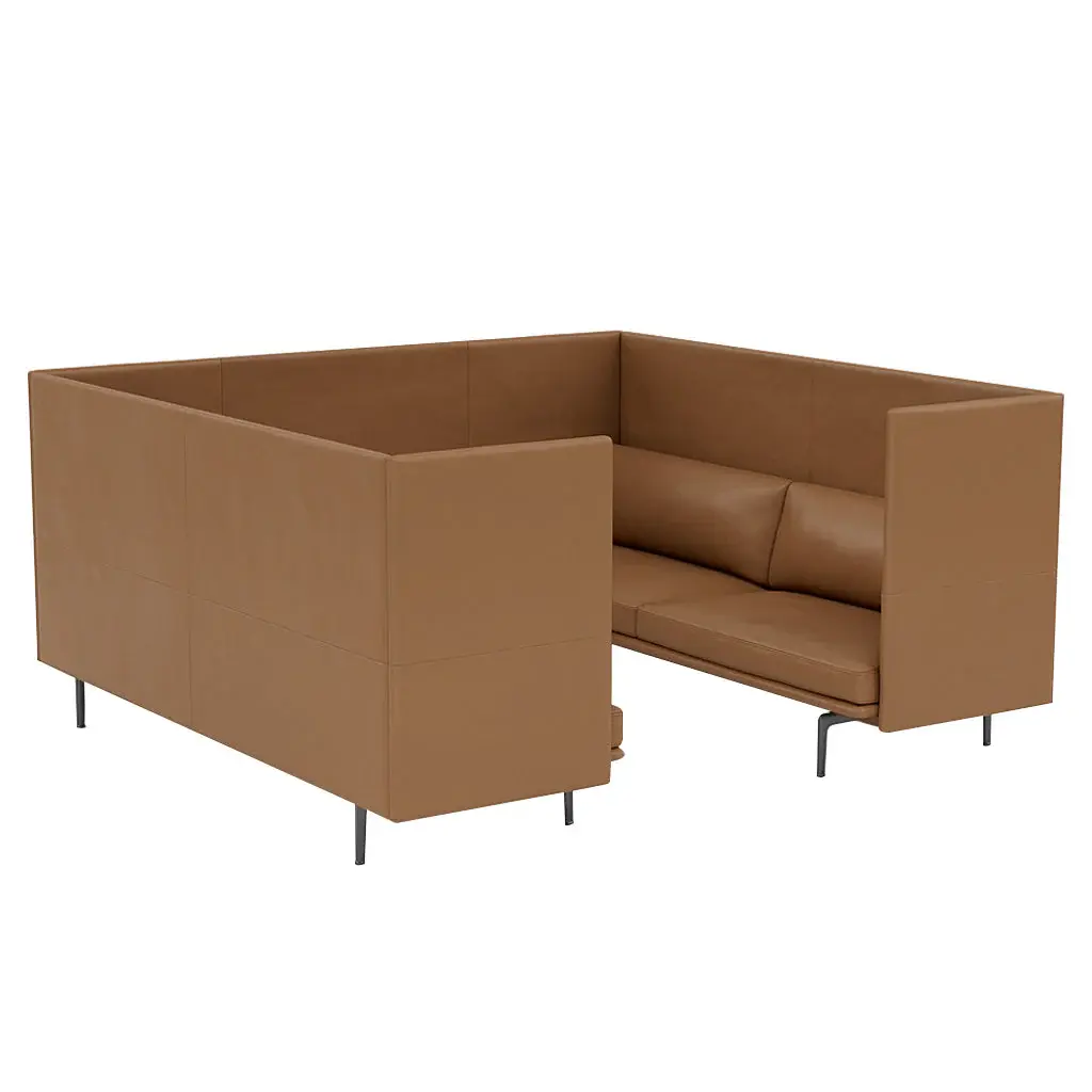 Cabin brings the ultimate expression of the Outline Highback family designed to create an elevated sense of focus and immersion within a larger space—here in the 2 options for a smaller version. Within its clean-lined confines, choose from upholstery in a range of materials and the option of a black-lacquer work table for the enveloping acoustic and spatial enclosure, ideal for work in solitude or collaboration in a group session.