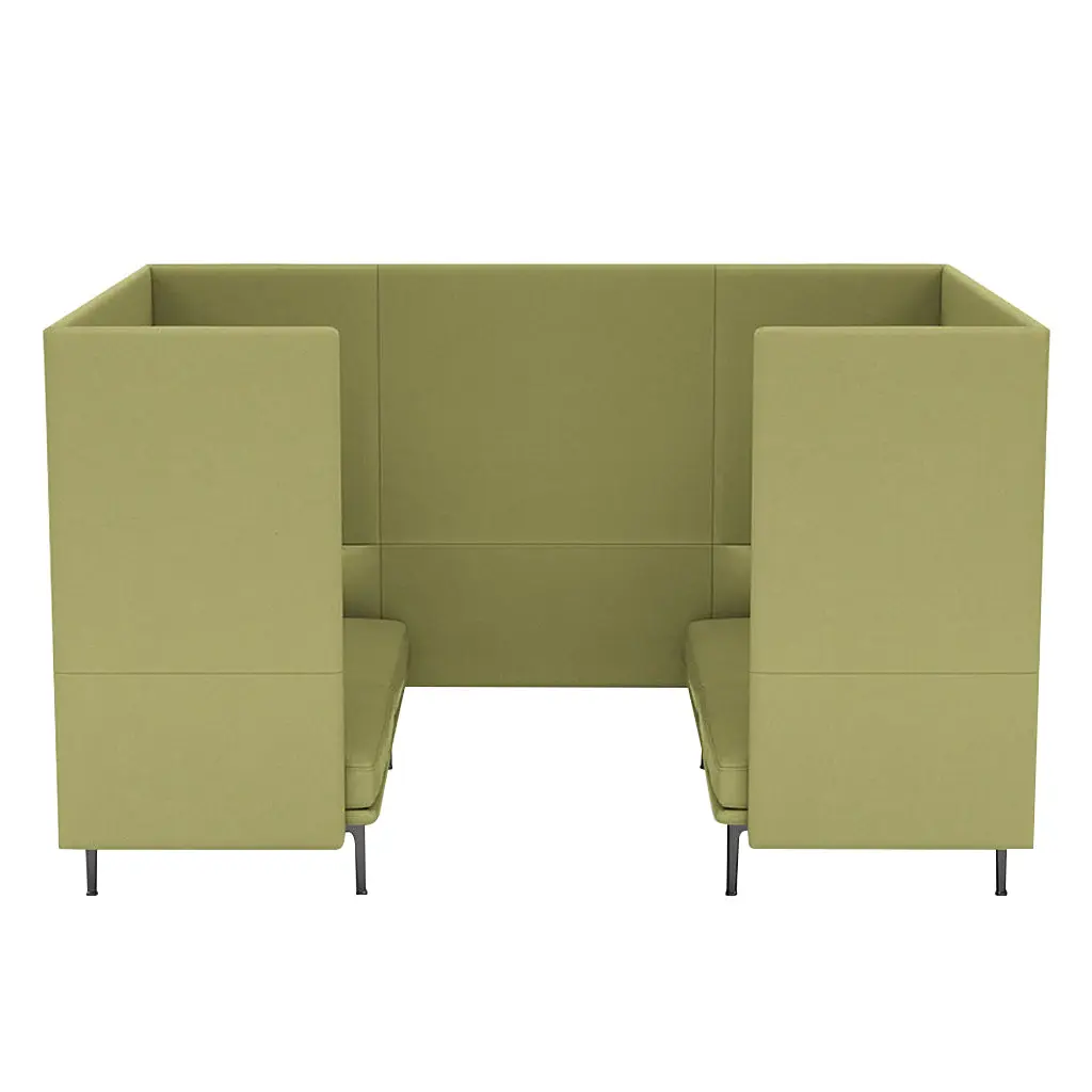 Cabin brings the ultimate expression of the Outline Highback family designed to create an elevated sense of focus and immersion within a larger space—here in the 2 options for a smaller version. Within its clean-lined confines, choose from upholstery in a range of materials and the option of a black-lacquer work table for the enveloping acoustic and spatial enclosure, ideal for work in solitude or collaboration in a group session.