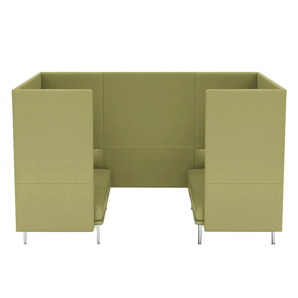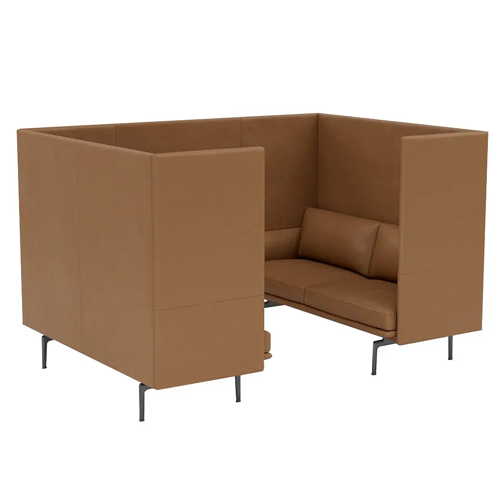 Cabin brings the ultimate expression of the Outline Highback family designed to create an elevated sense of focus and immersion within a larger space—here in the 2 options for a smaller version. Within its clean-lined confines, choose from upholstery in a range of materials and the option of a black-lacquer work table for the enveloping acoustic and spatial enclosure, ideal for work in solitude or collaboration in a group session.