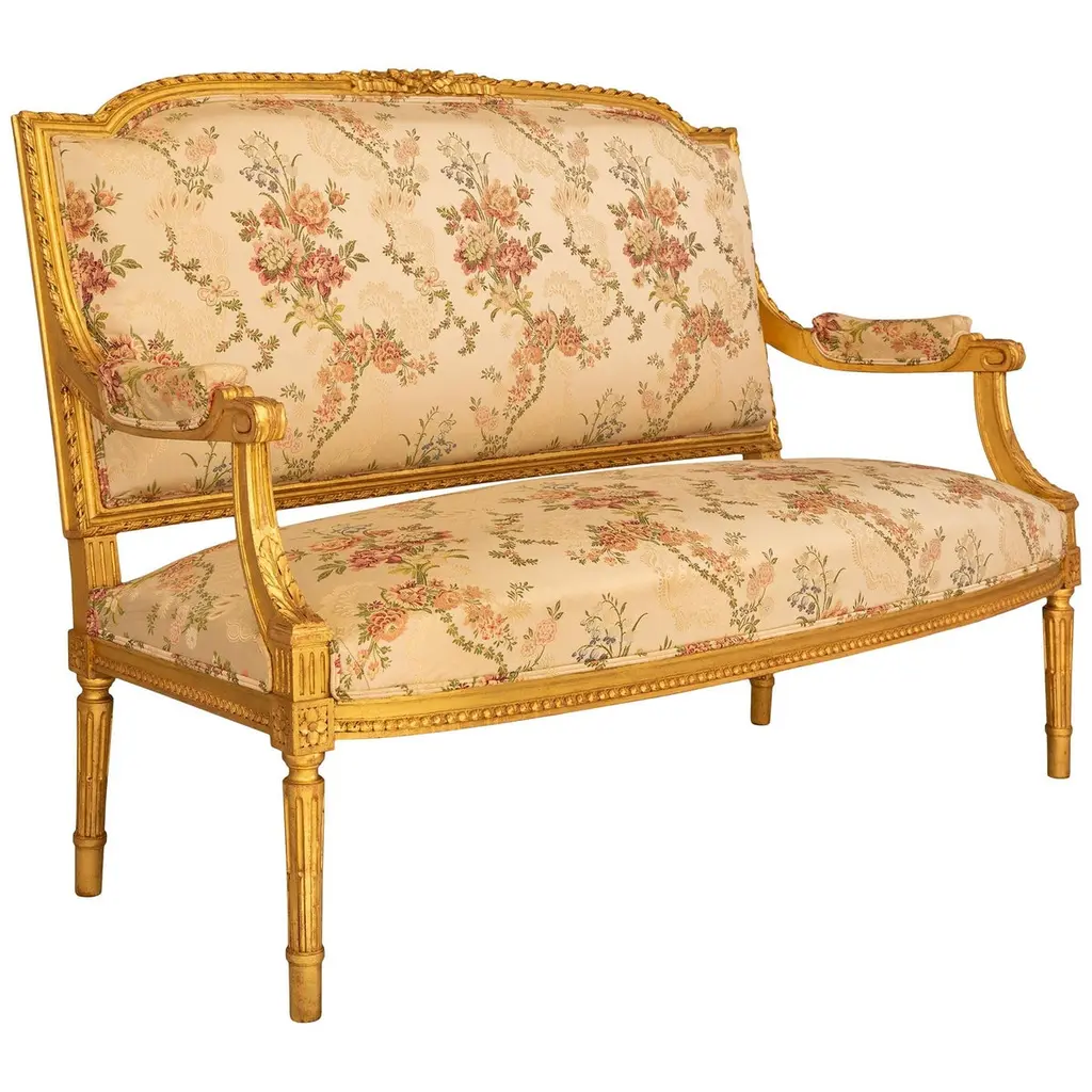 Pair Of French 19th Century Louis Xvi Style Giltwood Settees