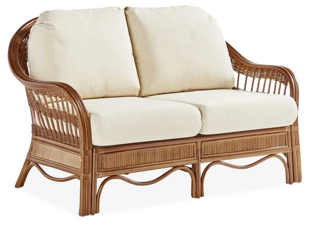 Palm Harbor Rattan Loveseat, Natural/white