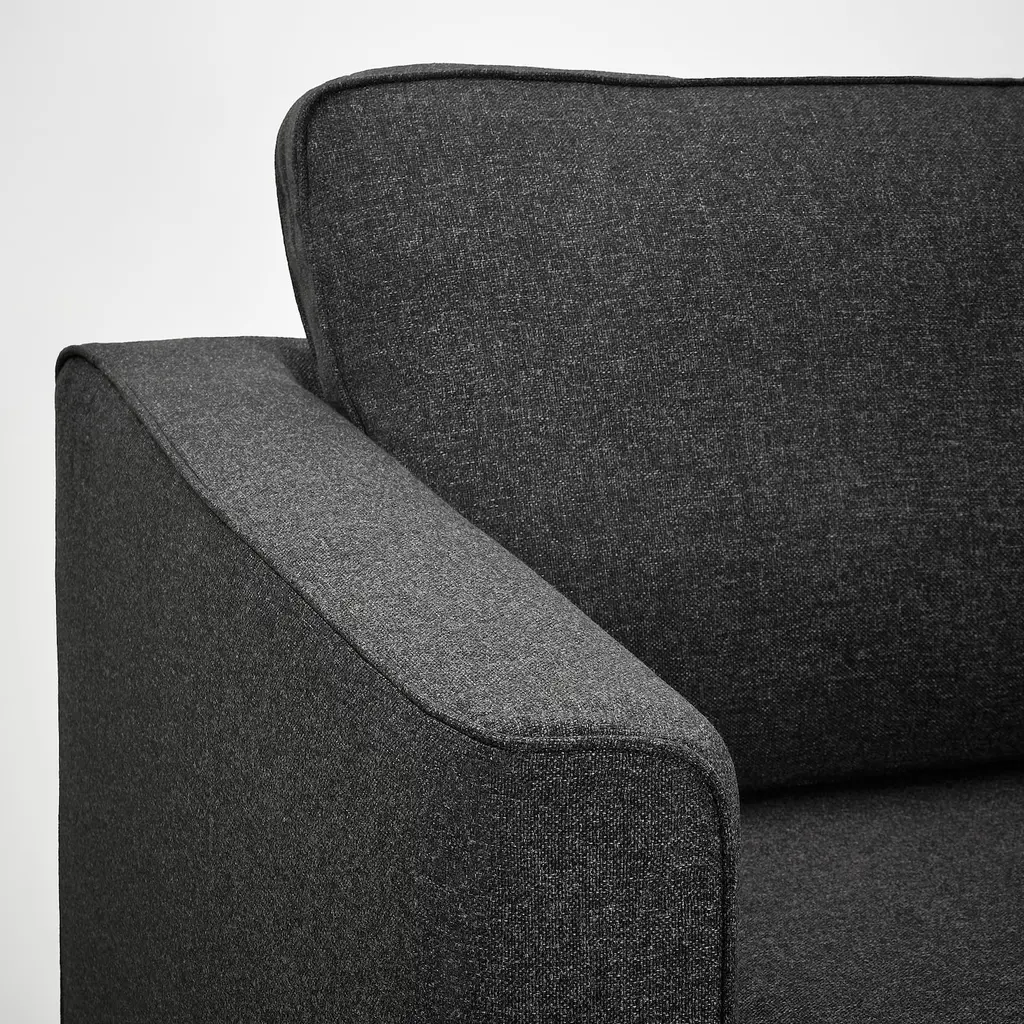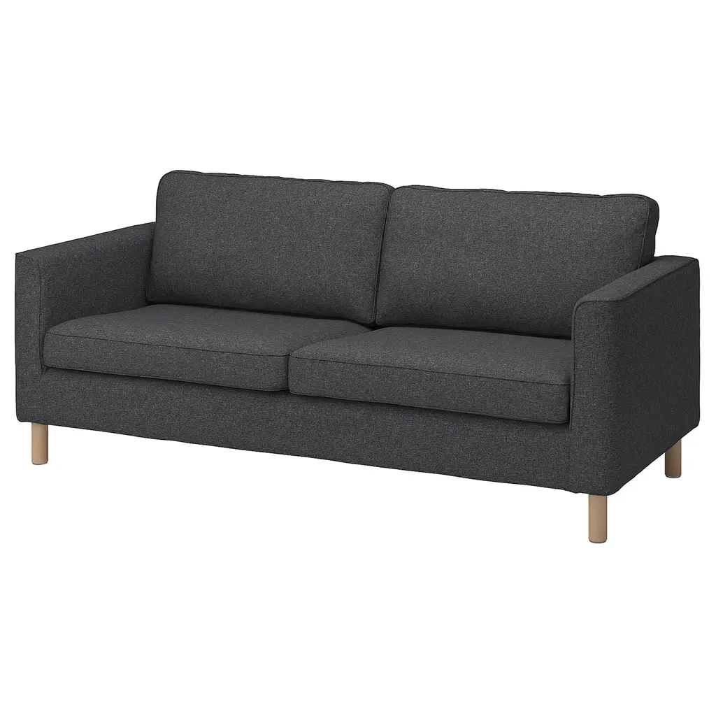 PÄRUP Sofa - Gunnared dark gray. Timeless design with delicate details such as piping around the armrests and wooden legs. The legs leave space under the sofa in order to create an airy look and make it easier for you when cleaning.