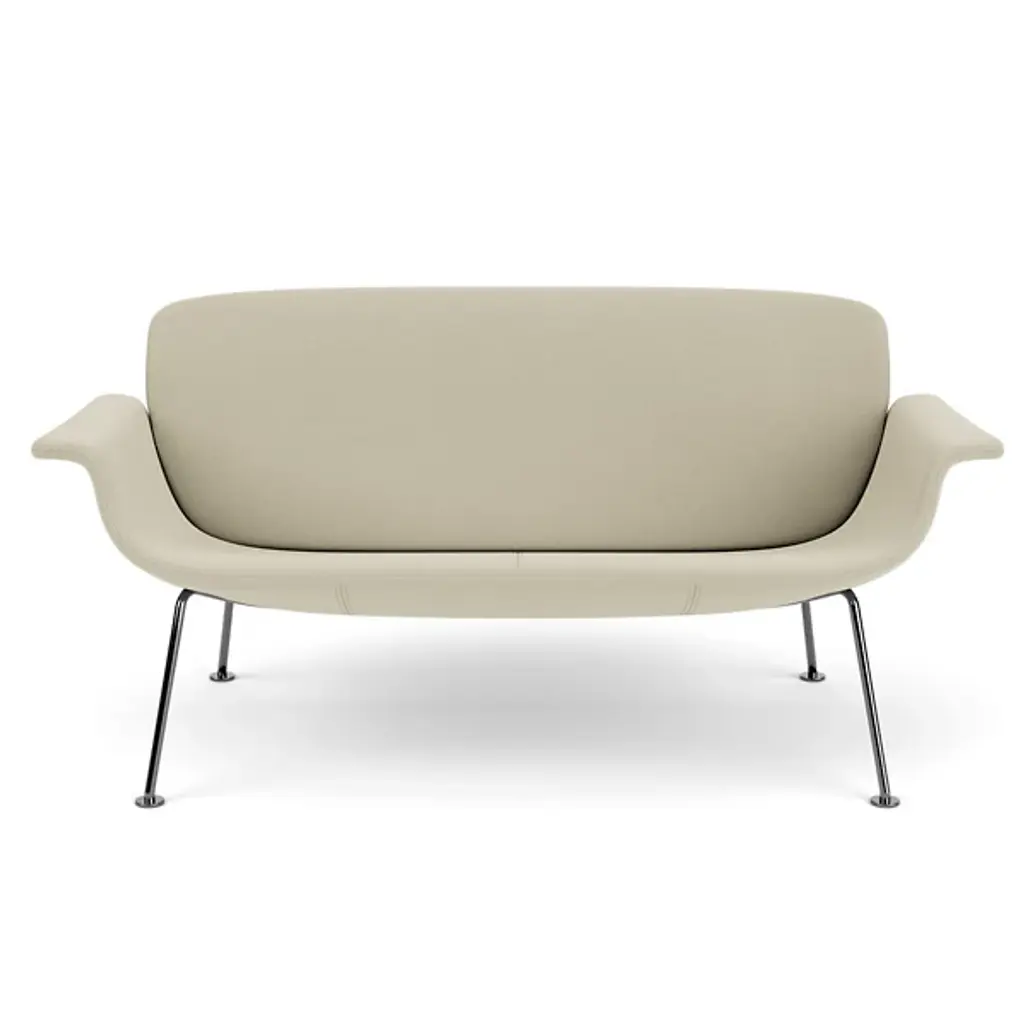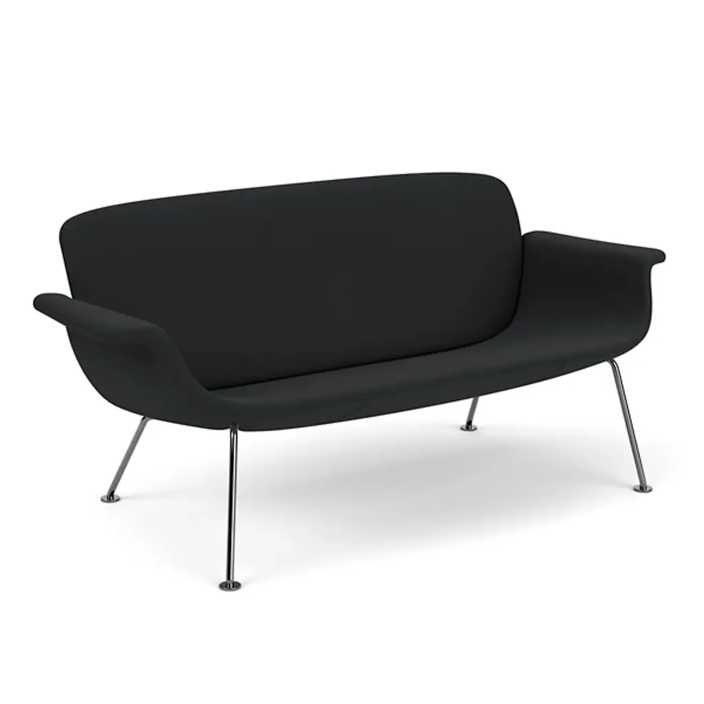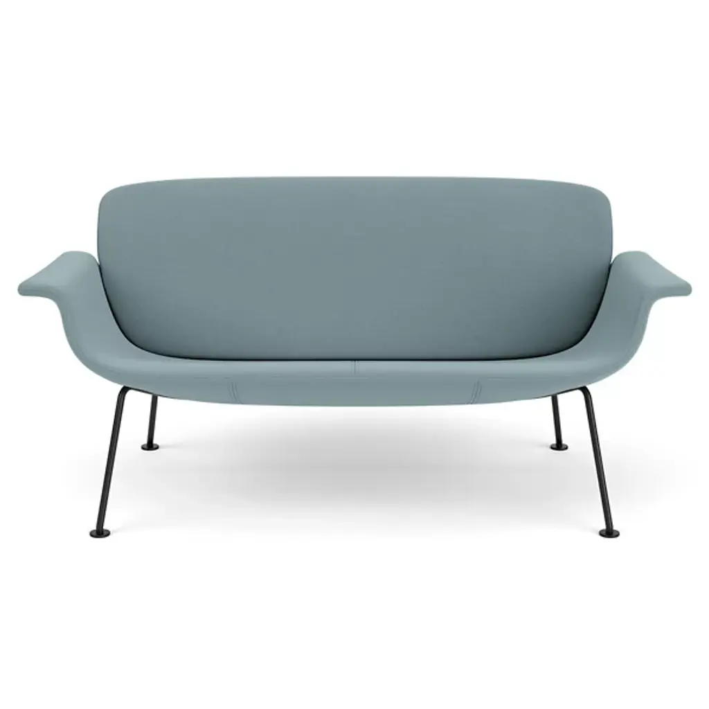 The Piero Lissoni Settee from Knoll presents the living space with clean, formal shapes lined on the interior with comfort-setting material. Architect and designer Piero Lissoni’s work draws inspiration from a sense of rigor and simplicity. Here, short metal legs put focus on the seating portion by suggesting a floating display. Perpendicular angles define the robust shapes on top, like Lissoni’s architectural feats. One is supported by ample backrests and a pair of armrests. As one leans back, the softness of the polyester fabric upholstery fills one with a calming feel.
