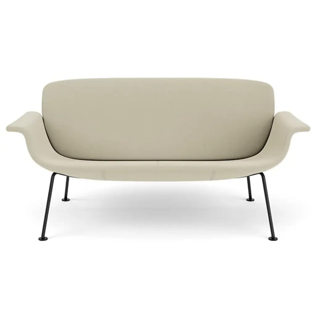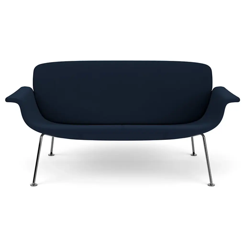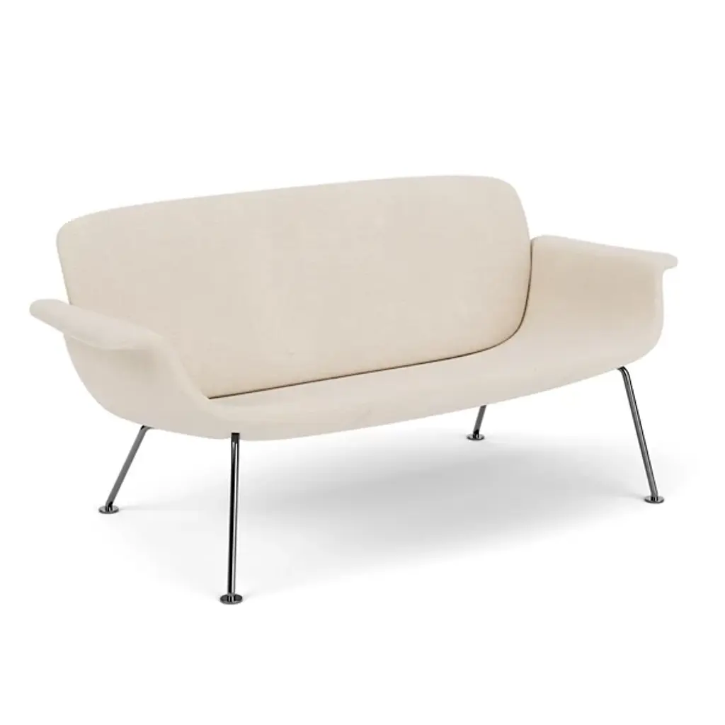 The Piero Lissoni Settee from Knoll presents the living space with clean, formal shapes lined on the interior with comfort-setting material. Architect and designer Piero Lissoni’s work draws inspiration from a sense of rigor and simplicity. Here, short metal legs put focus on the seating portion by suggesting a floating display. Perpendicular angles define the robust shapes on top, like Lissoni’s architectural feats. One is supported by ample backrests and a pair of armrests. As one leans back, the softness of the polyester fabric upholstery fills one with a calming feel.