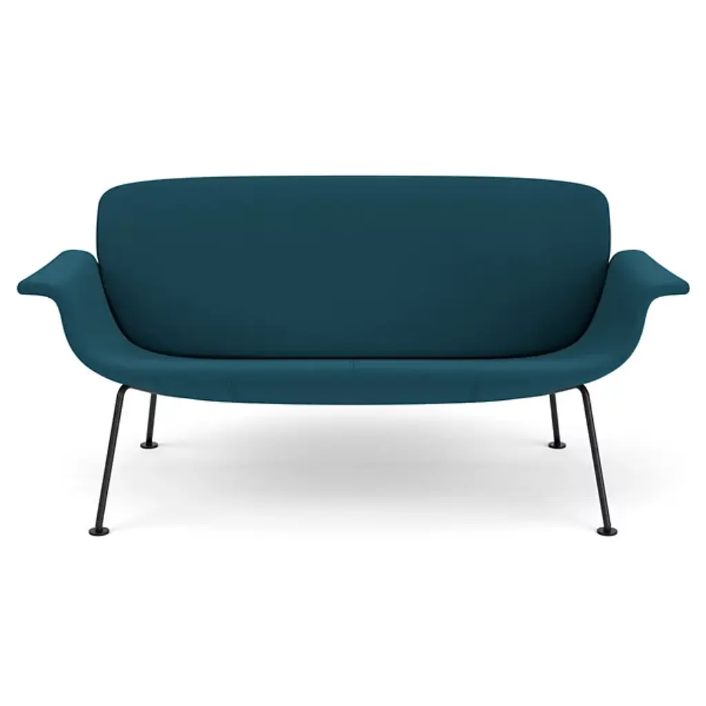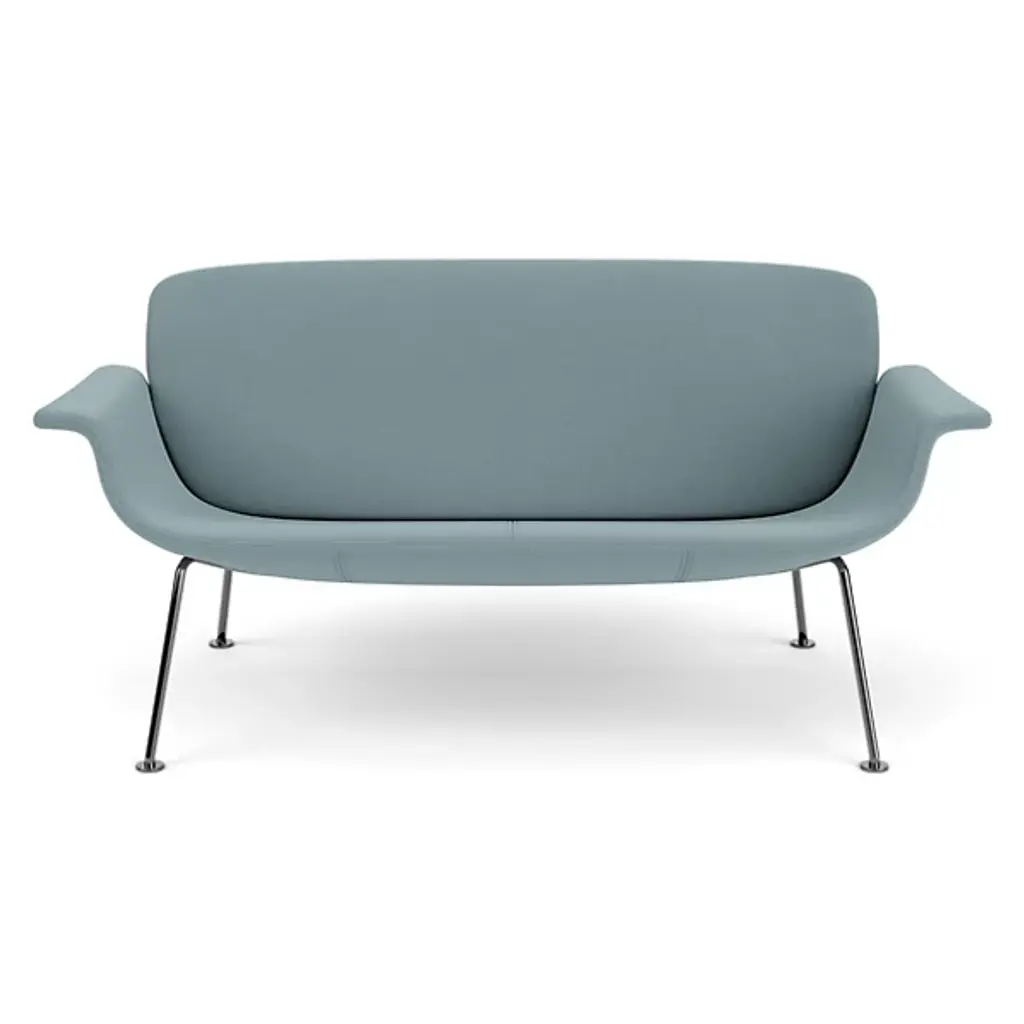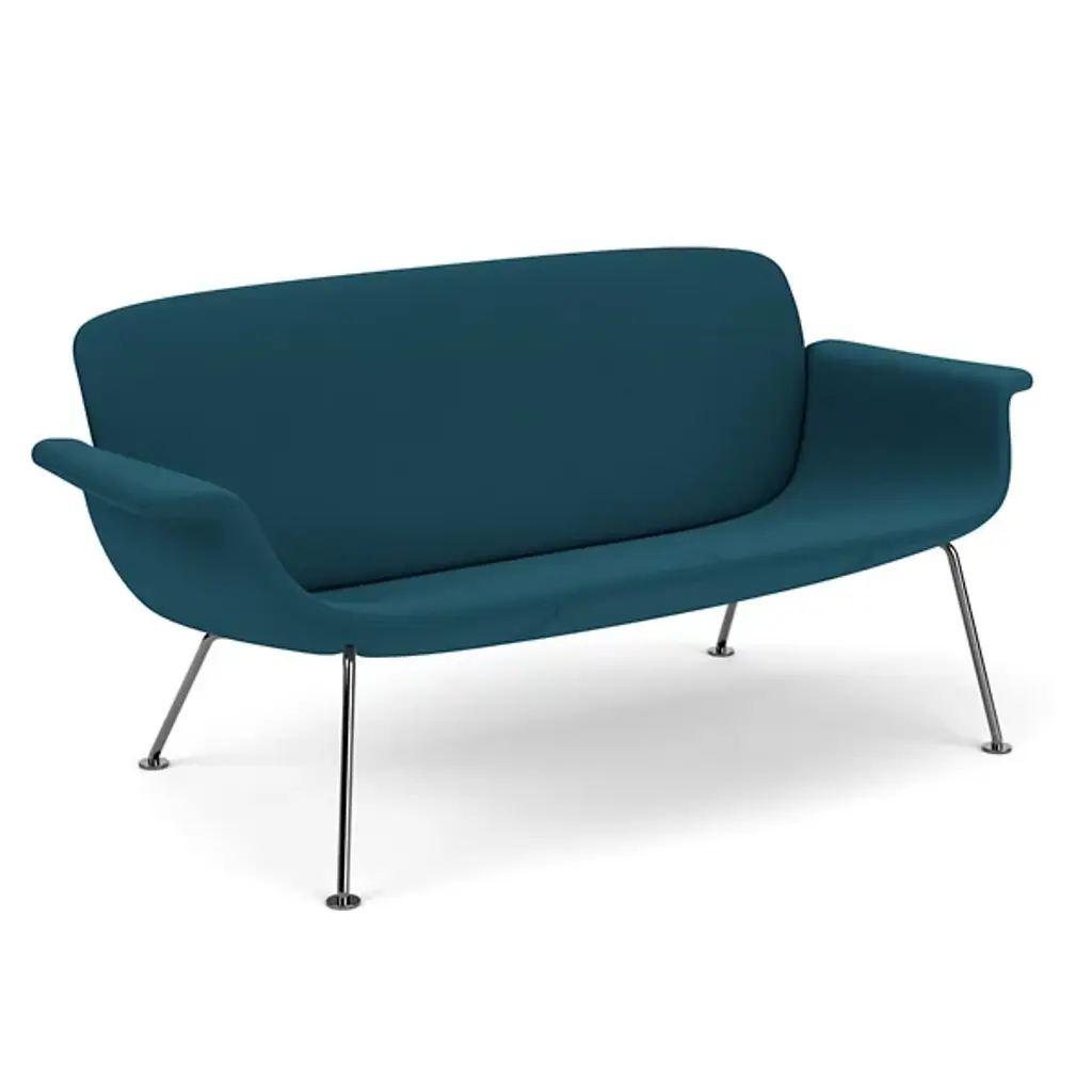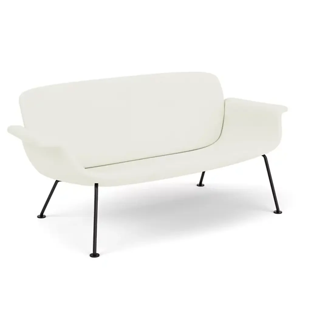 The Piero Lissoni Settee from Knoll presents the living space with clean, formal shapes lined on the interior with comfort-setting material. Architect and designer Piero Lissoni’s work draws inspiration from a sense of rigor and simplicity. Here, short metal legs put focus on the seating portion by suggesting a floating display. Perpendicular angles define the robust shapes on top, like Lissoni’s architectural feats. One is supported by ample backrests and a pair of armrests. As one leans back, the softness of the polyester fabric upholstery fills one with a calming feel.