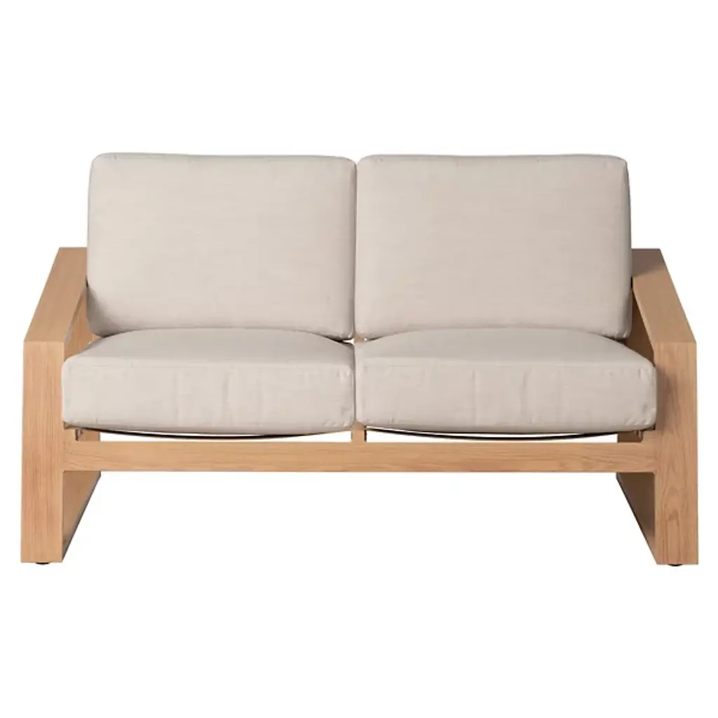The Pursuit Outdoor Loveseat from Lloyd Flanders updates outdoor seating with its deliberately low-slung frame that offers surprising ergonomic support. Peter Homestead's design incorporates high-performance cushions with foam cores for structure, wrapped in polyester layered fill for comfort. The 100% Sunbrella Acrylic fabric encasement provides moisture resistance for worry-free outdoor use. This loveseat's all-aluminum frame construction prevents weather-related expansion and contraction, while the faux-wood finish delivers teak's aesthetic without its maintenance demands. The powder-coated, fully welded structure ensures stability and longevity, making it perfect for patios, porches, and poolside retreats.