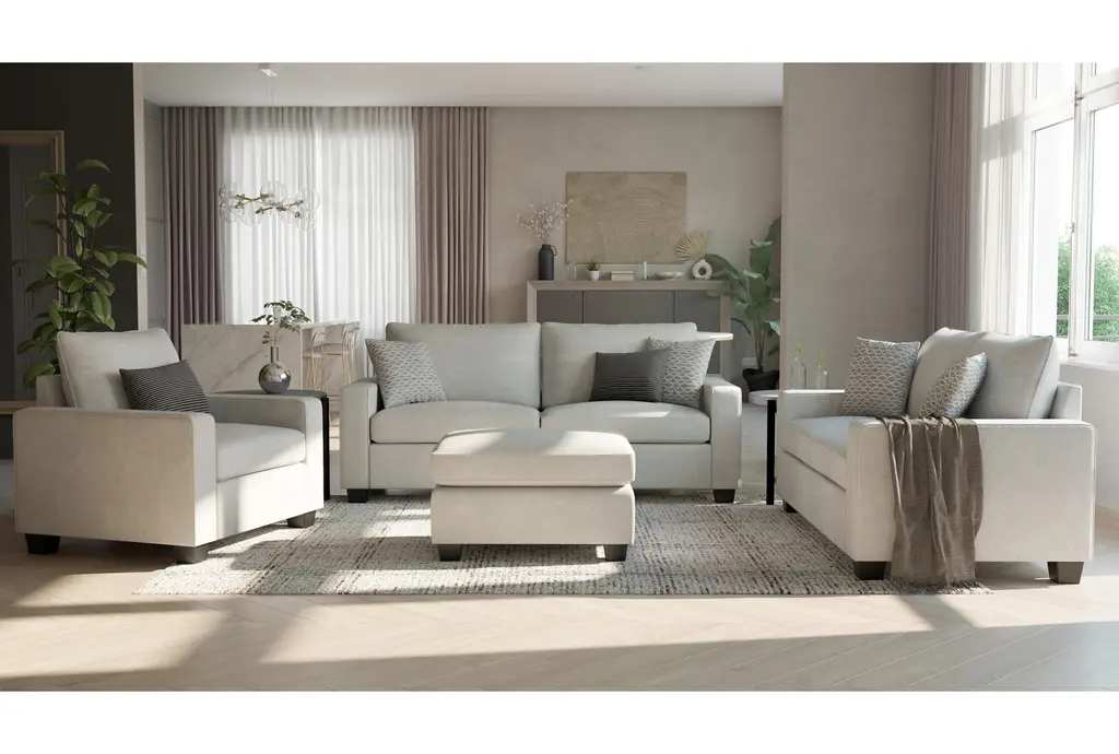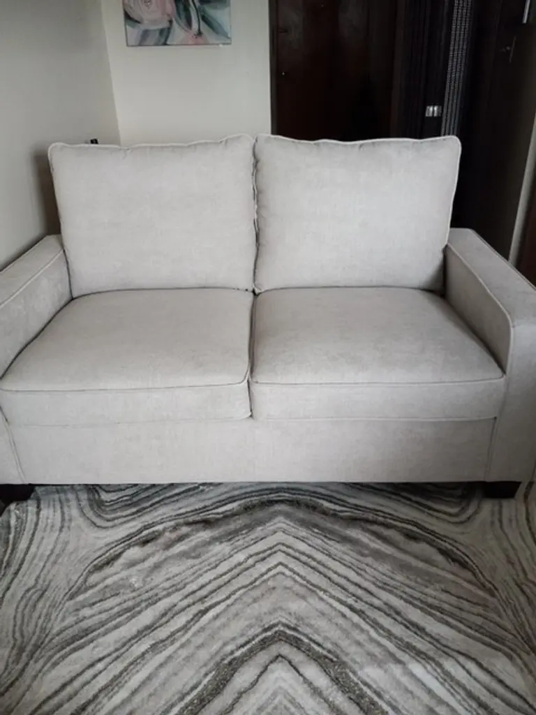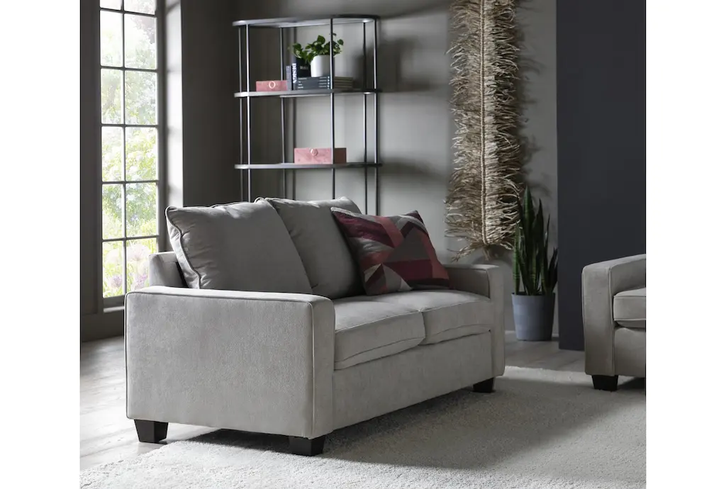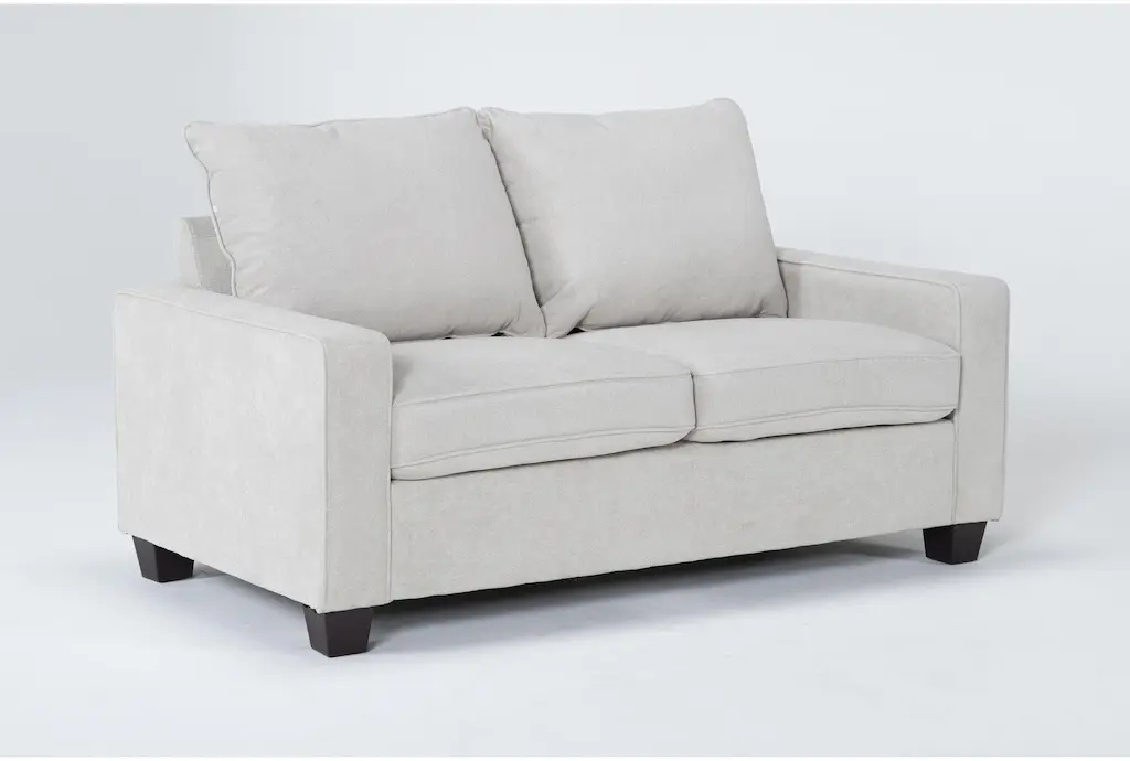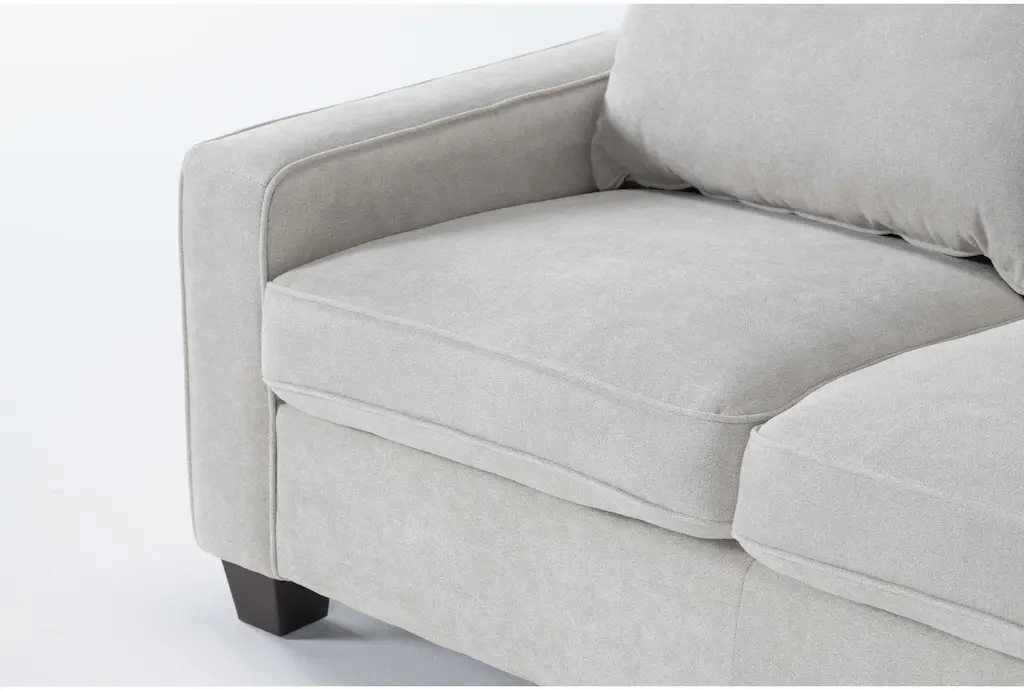 The Reid Buff Beige Fabric 65" Loveseat is a stylish and contemporary addition to your living space. With its firm comfort level, this loveseat offers both support and a cozy seating experience. The track arms and tapered legs add a modern touch to the overall design.