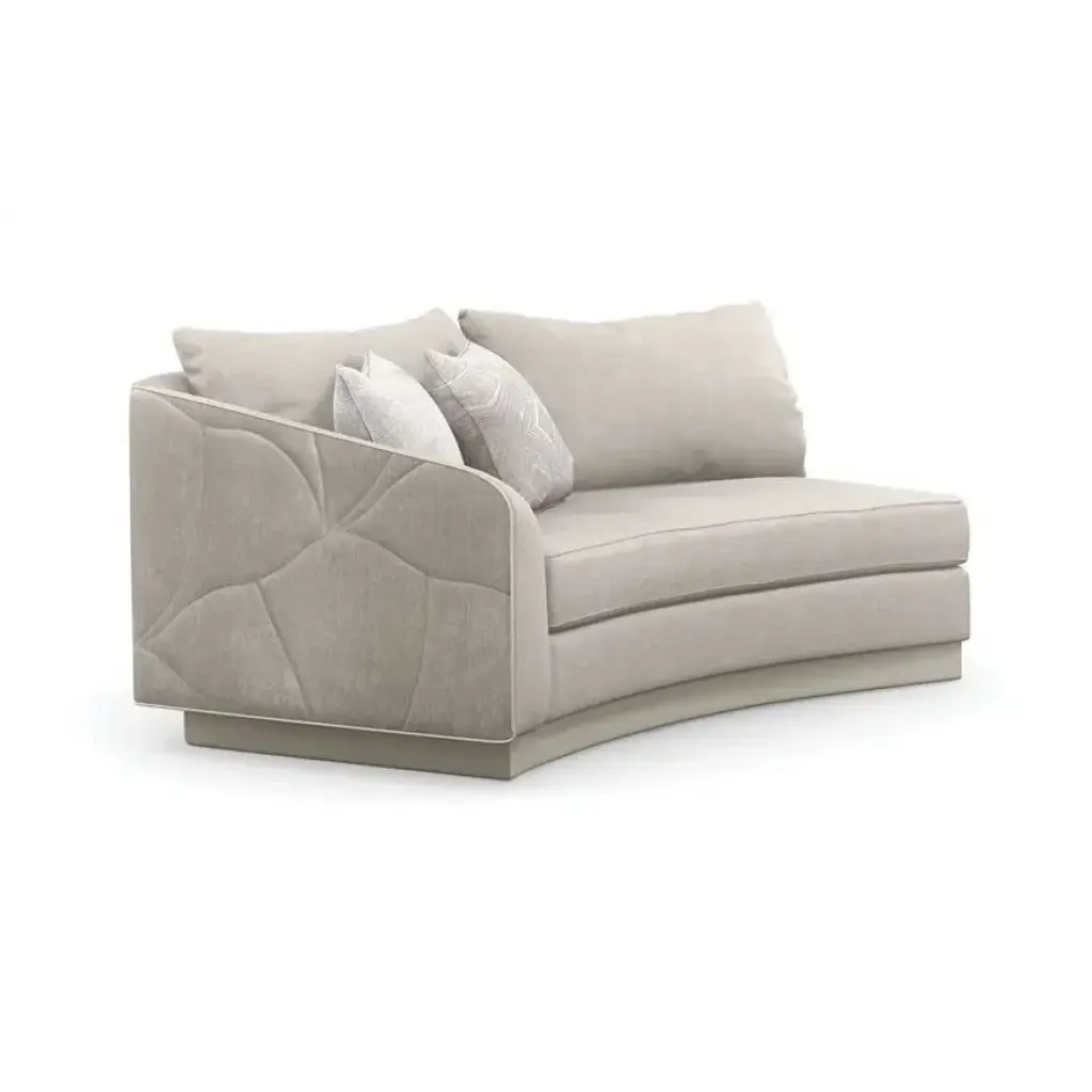 The clean lines and smart angles of a Repetition modular sofa create a stylish sectional solution for modern seating. Long uninterrupted planes of finely tailored upholstered cushions create a sumptuous retreat with true simplicity of form. Repetition’s frame is finished in London Fog while its metal legs wear Zinc Oxide—adding additional layers of luxe to its refined palette. Ultimately configurable, this stunning seating solution can be arranged to fit your space while reflecting your unique design perspective.