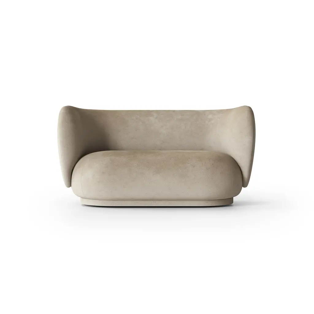 A statement piece designed to effortlessly elevate any room, the Rico 2-Seater Sofa from Ferm Living . Sculptural lines and embracing curves collide to form a cozy, comfortable seat perfect for relaxing in any lounge space or living room. A range of classically tailored upholstery options completes the look, letting you create the oasis of your dreams. Highlights
