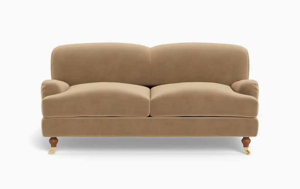 Designed in collaboration with The Everygirl, the Rose custom sofa is traditional to its core, complete with a classic English roll arm, pleated tailoring, a soft silhouette, and turned wooden legs with casters. The rounded back provides the perfect level of support, yet easily accommodates your favorite pillows. Designed to make a subtle statement in any space, the Rose exudes classic charm. “I was especially inspired by the set designs of everyone's favorite Nancy Meyer movies beautiful and lived-in," says The Everygirl founder Alaina.