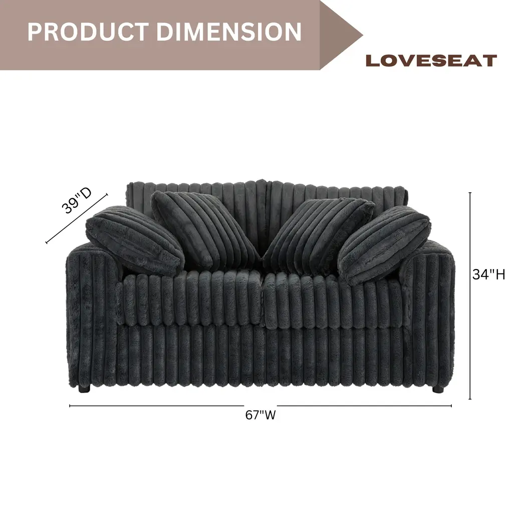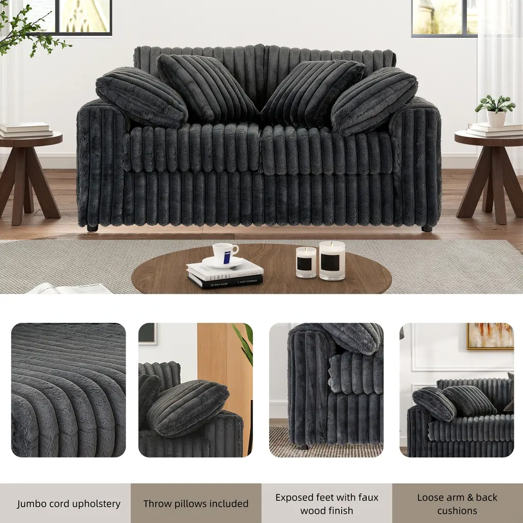 Experience a seamless blend of comfort and style with the Roundhill Furniture Belvoir Living Room Loveseat. This Loveseat embodies modern design with plush, on-trend jumbo cord upholstery paired with loose seat and back cushions for maximum relaxation. A corner-blocked wood frame and high-resilience foam cushions ensure lasting durability, while chic exposed feet with a rich espresso finish add contemporary elegance. Every moment spent on this loveseat invites you to a serene retreat. Proudly made in the USA. Elevate your living room with the Belvoir Collection from Roundhill Furniture. This multi-functional piece is crafted with meticulous attention to detail. Available in two elegant colors: Beige Champagne and Charcoal Gray. Matching accent pillows included. Features:Dimensions: Kindly be aware that the color of the actual item may slightly differ from the photo due to variations in monitor display.