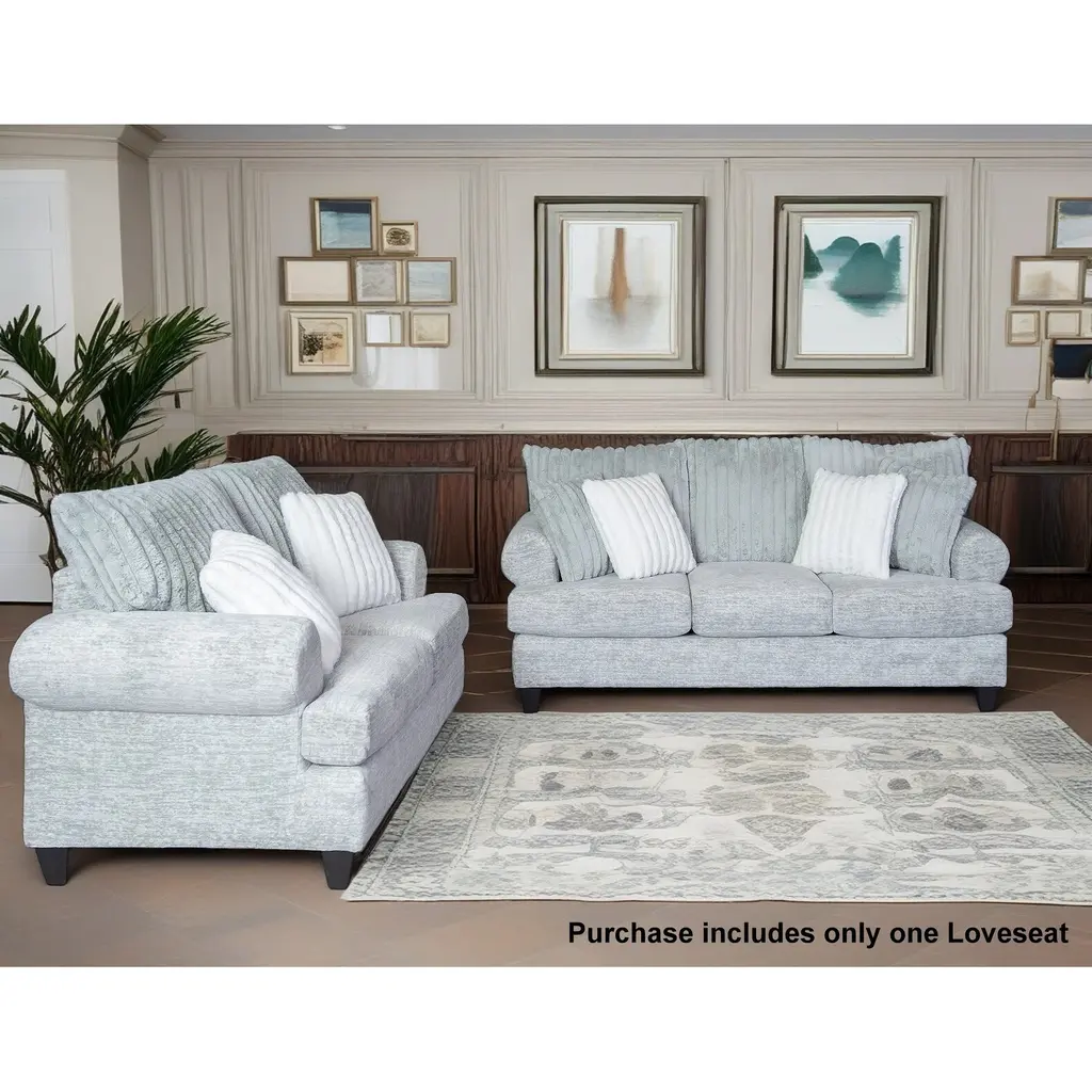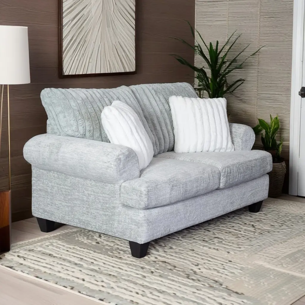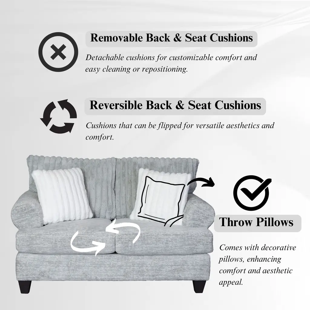 Experience a blend of comfort and style with the Roundhill Furniture Oasis Transitional Stationary Loveseat in Galactic Oyster. This loveseat is a beacon of modern design. Its plush, cord-textured upholstery, combined with reversible seat cushions and matching accent pillows, ensure maximum comfort. The wooden frame and high-resiliency foam cushions offer durability. The chic, exposed feet with a rich espresso finish add a touch of contemporary elegance. Immerse yourself in a serene retreat of relaxation with every moment spent on this loveseat. Elevate your living room ambiance with the Roundhill Furniture Oasis Collection, where every detail contributes to an extraordinary seating experience. Features:Dimensions: