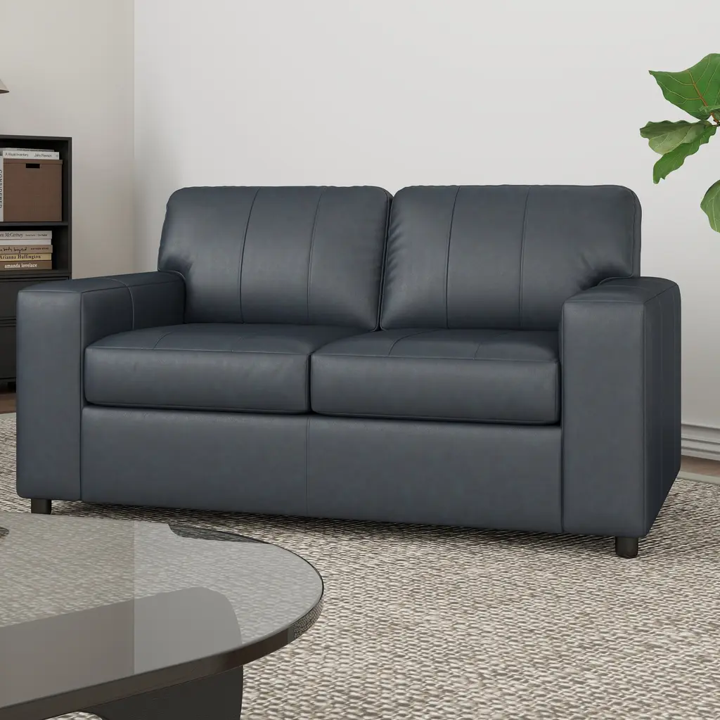 Roundhill Furniture Sakan Leather Upholstered Loveseat - Dark Blue