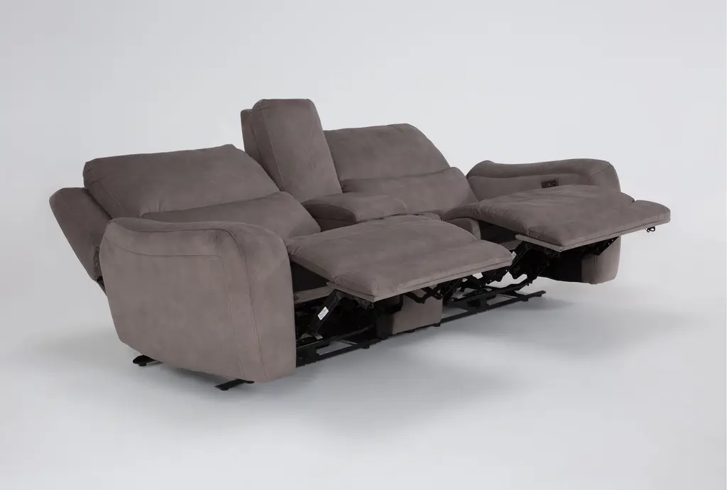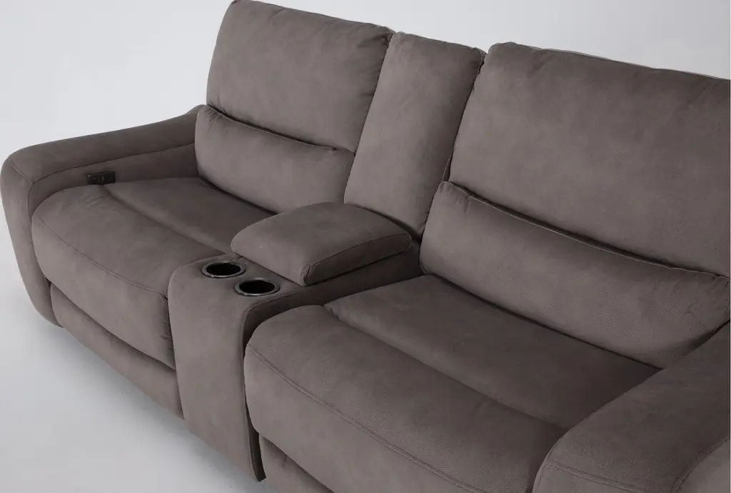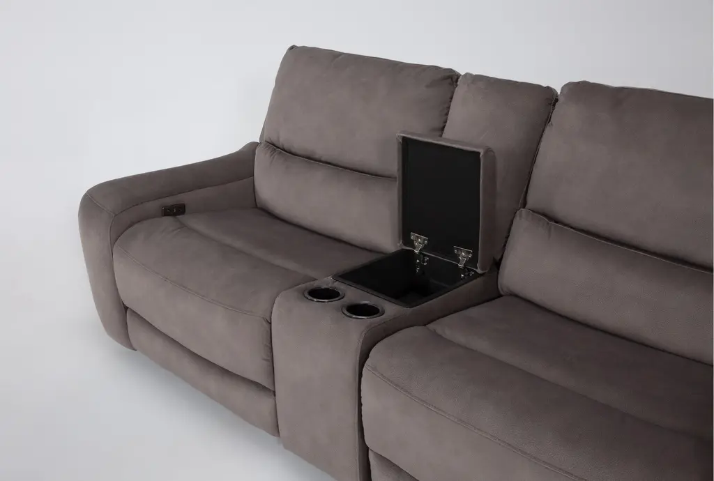 Ryder Grey Fabric 95" 3 Piece Power Reclining Modular Console Loveseat | Usb | Storage | Cup Holders