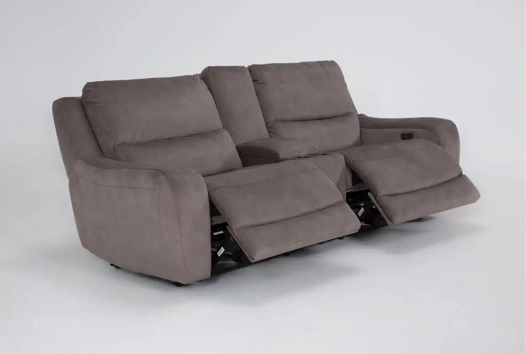 Experience the ultimate in comfort and convenience with the Ryder Grey Fabric 95" 3 Piece Power Reclining Modular Console Loveseat. Designed in a casual style, this loveseat features a beautiful Aspen Walnut color that complements any living space. The 100% Terylene fabric ensures durability and a soft touch, making it perfect for everyday use.