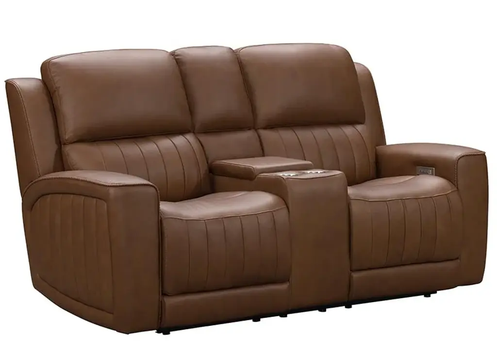 Our Ryder loveseat with console seamlessly blends style and modern motion. Relax at the push of a button with this piece's infinite power reclining capabilities. With no-sag spring construction and luxurious 2.1-density leather seating, this loveseat will be your favorite seat in the house.