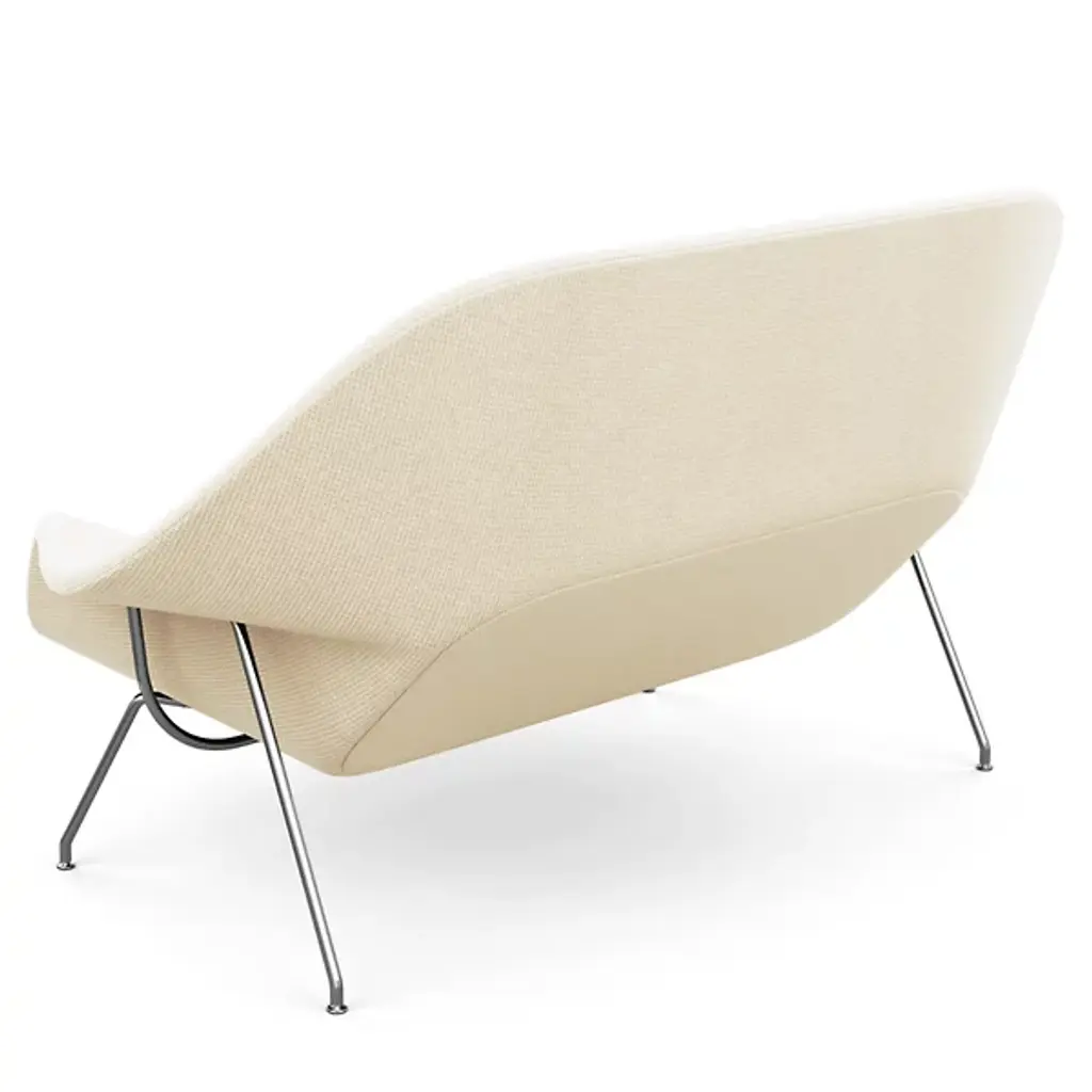 Find your bliss with the Saarinen Womb Settee by Knoll. Designed by Eero Saarinen in 1948, the Settee is a product of Florence Knoll asking the iconic designer to craft something that she could “curl up in”. Its modern, yet comfortable look is crafted from a molded, reinforced fiberglass shell, which is layered in dense foam and topped with separate seat and back cushions in polyester fiber over a foam core. Its steel rod and plush upholstered add a high level of stability and support. Large enough for 2 to relax in, the Saarinen Womb Settee is ideal for any contemporary living room, bedroom or guest room.