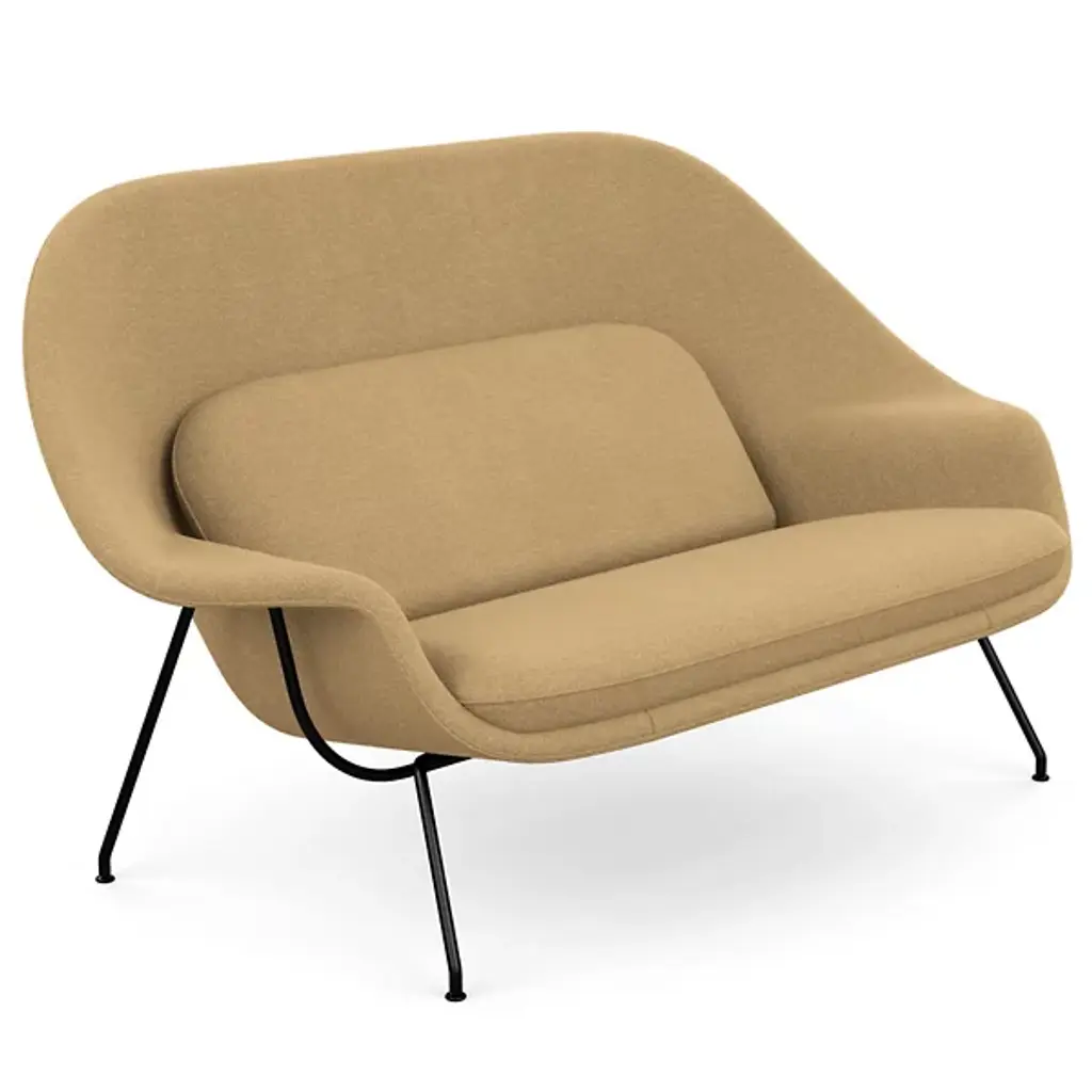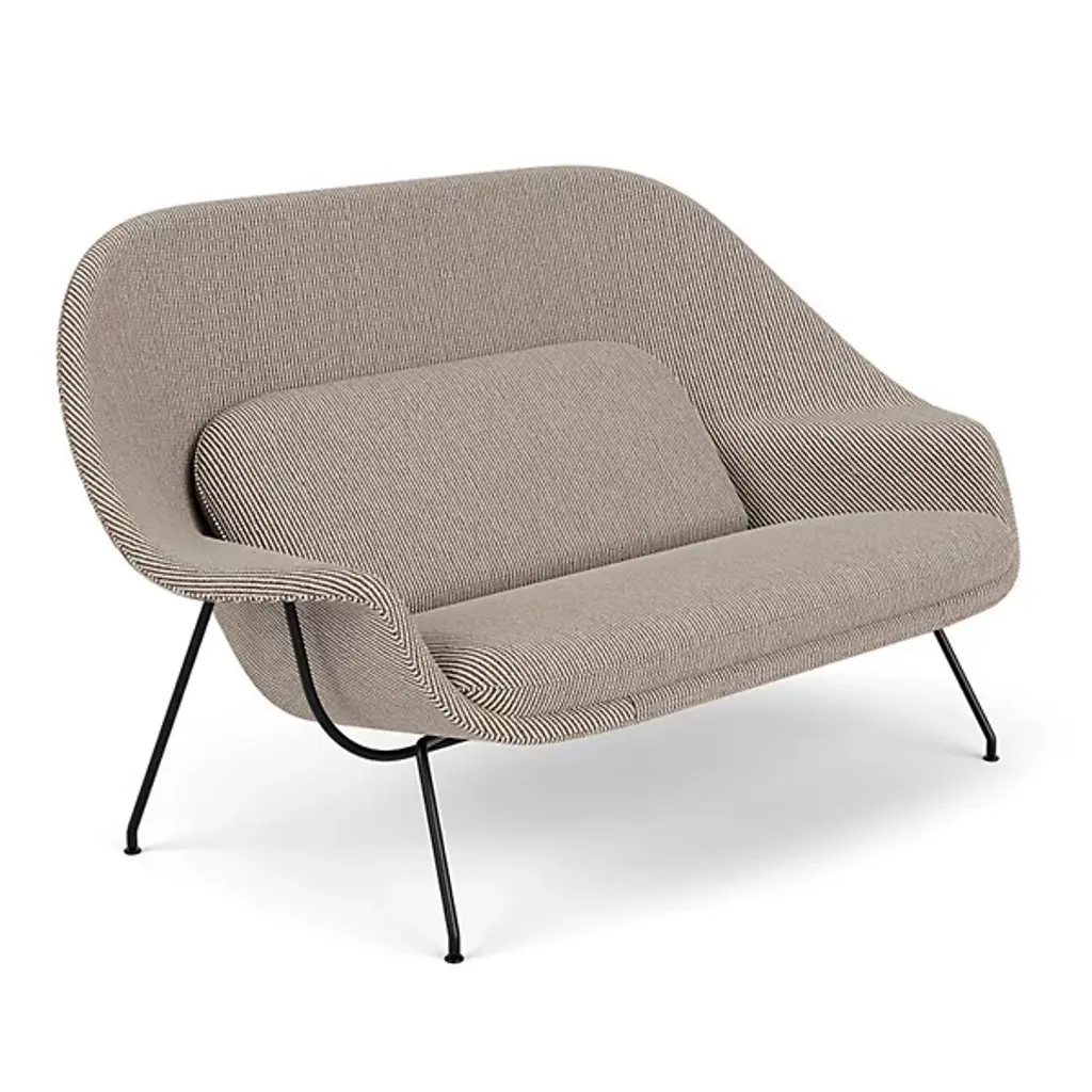 Find your bliss with the Saarinen Womb Settee by Knoll. Designed by Eero Saarinen in 1948, the Settee is a product of Florence Knoll asking the iconic designer to craft something that she could “curl up in”. Its modern, yet comfortable look is crafted from a molded, reinforced fiberglass shell, which is layered in dense foam and topped with separate seat and back cushions in polyester fiber over a foam core. Its steel rod and plush upholstered add a high level of stability and support. Large enough for 2 to relax in, the Saarinen Womb Settee is ideal for any contemporary living room, bedroom or guest room.