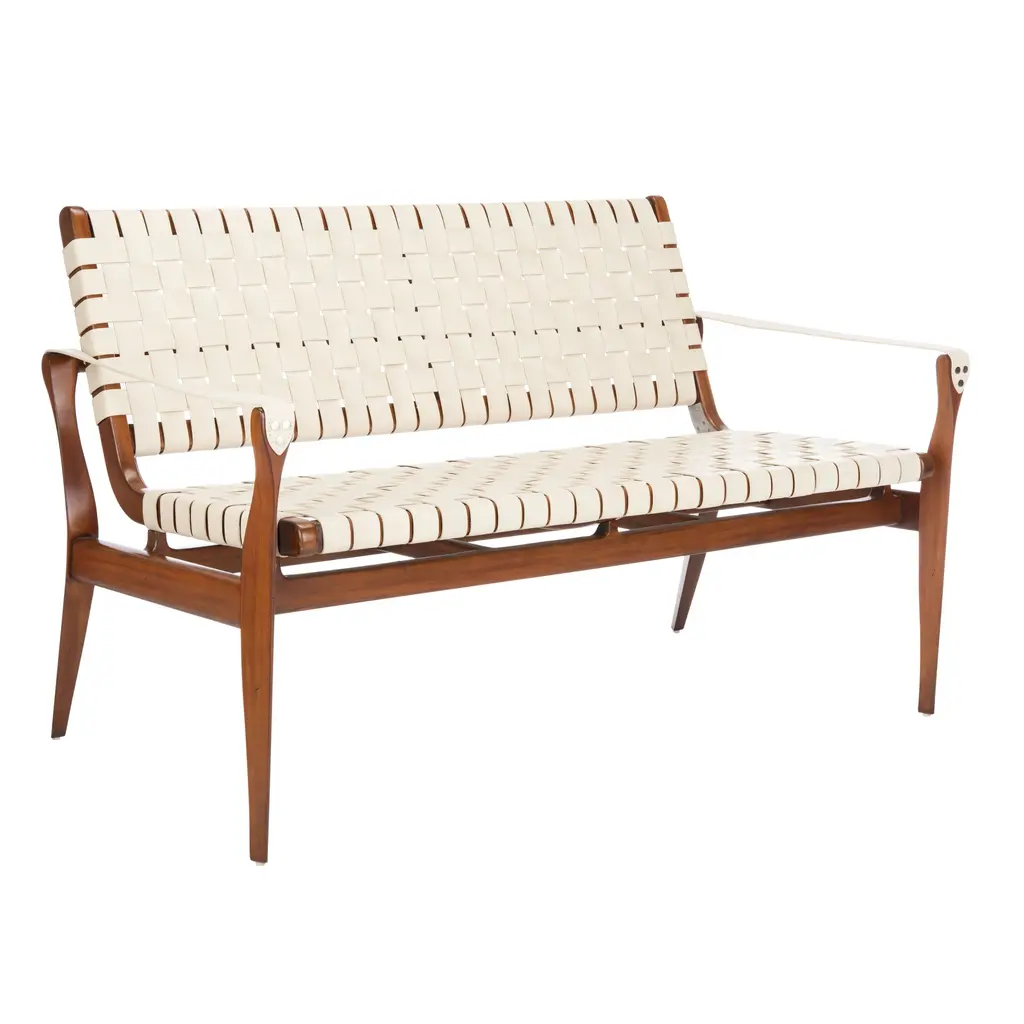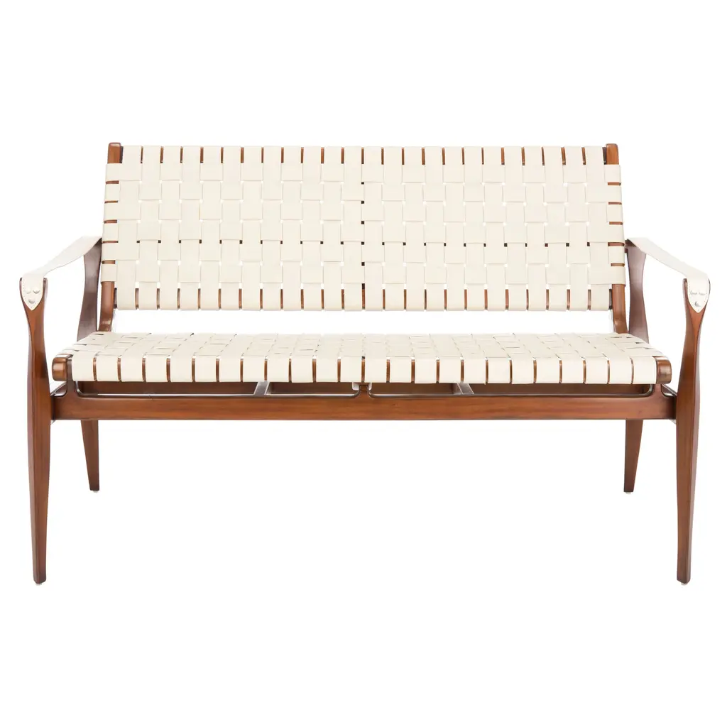 Safavieh Couture Dilan Leather Loveseat - White / Light Brown