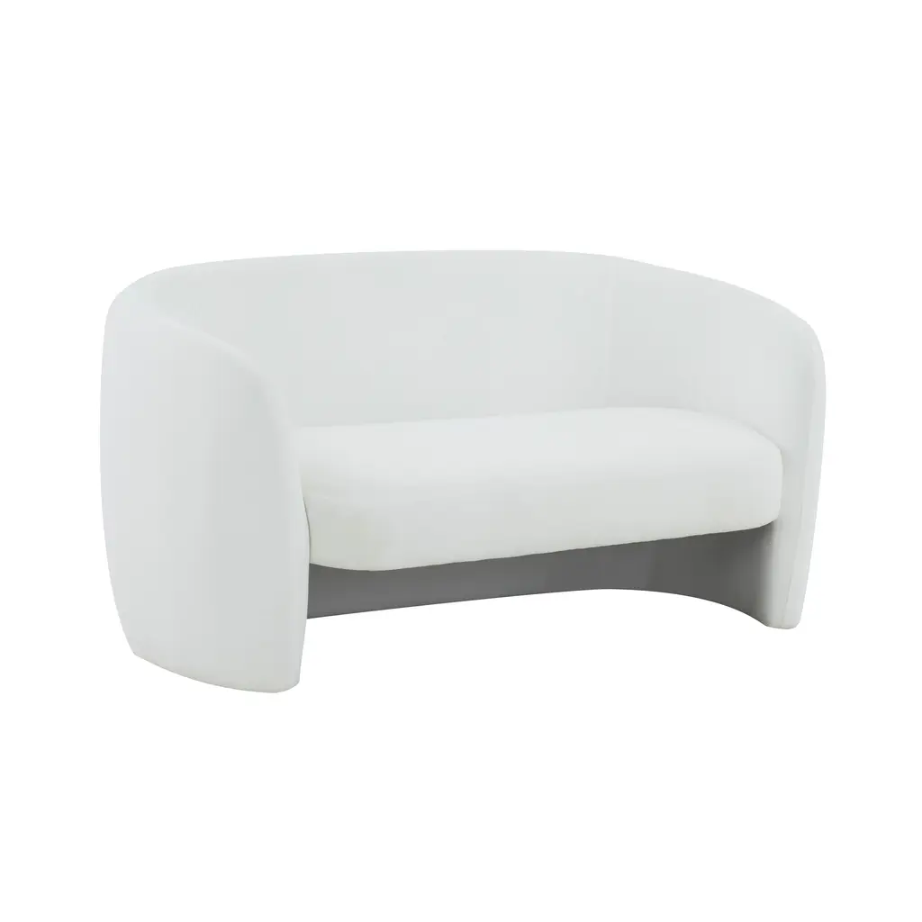 Revitalize your décor with this absolutely stunning Zhao Loveseat. An oasis of comfort in any interior, Zhao's ivory boucle upholstery beautifully showcases its gently curved wraparound silhouette, while a continuous cushion appears to float atop its expansive open base.