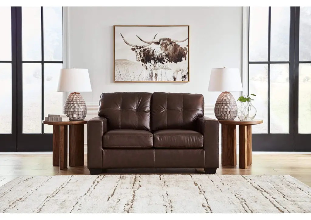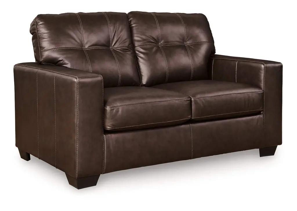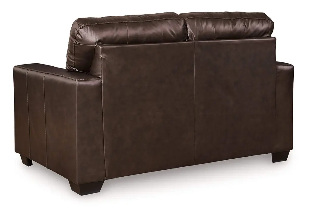 Whether your inspiration is contemporary or classic, the Santorine loveseat's good looks and affordable luxury are hard to deny. Its clean-lined silhouette and skillfully matched leather and faux leather upholstery offer a transitional sensibility that's right at home in your home. And the ample cushions with tufted details invite you to relax in comfort. Weight 123.000 lbs. (55.35kgs.)