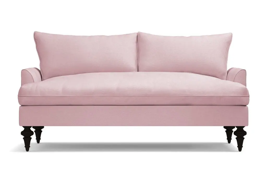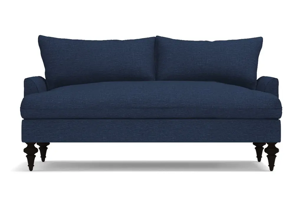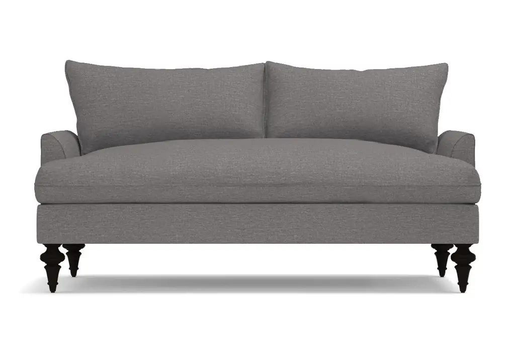 There are so many rave-worthy features on the Saxon Loveseat from Kyle Schuneman, but our favorite has to be the classic, decorative turned wood legs. For our high-heel wearing customers, the legs dress up this sofa much like heels dress up an outfit. They have the ability to elevate a simple design from same old to head-turning. Other impressive features of this transitional sofa include ultra-down plush seat cushioning and a deep bench seat for the ultimate in lounging comfort. The quality of the craftsmanship is evident throughout, and details such as knife edge trim along the seat and back cushions give it a refined, tailored finish, and the sofa is made in the USA. Choose from a range of colors that run the gamut from neutral and classy to warm and sassy.