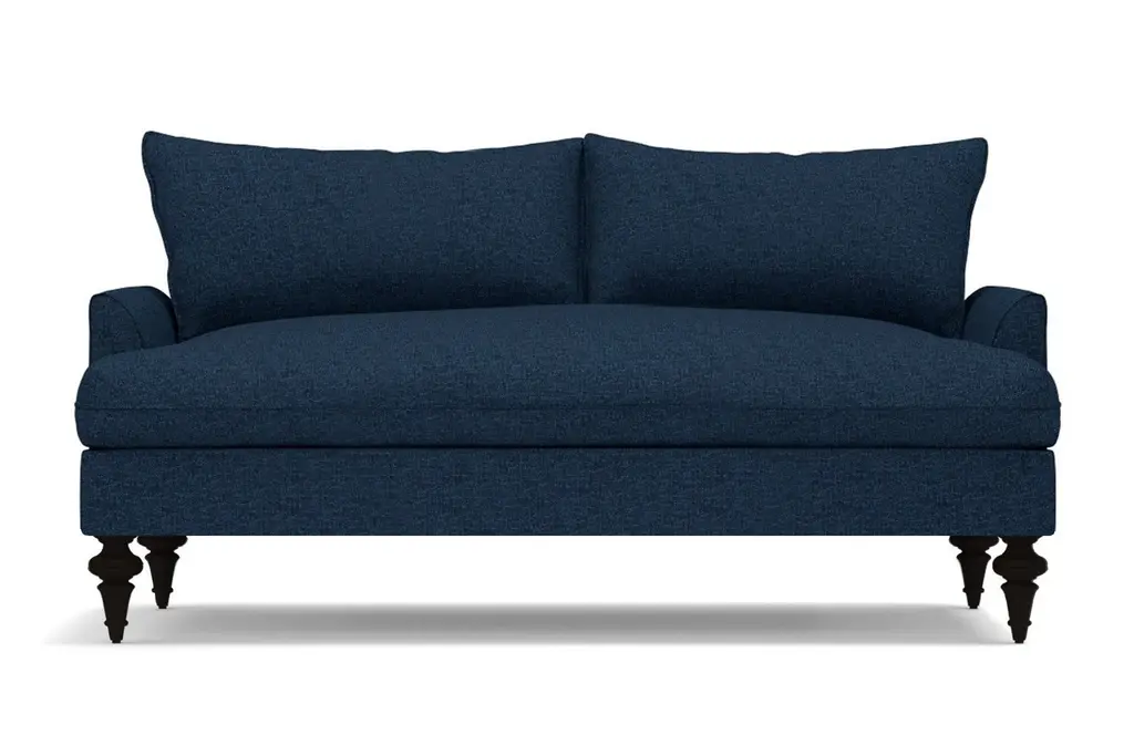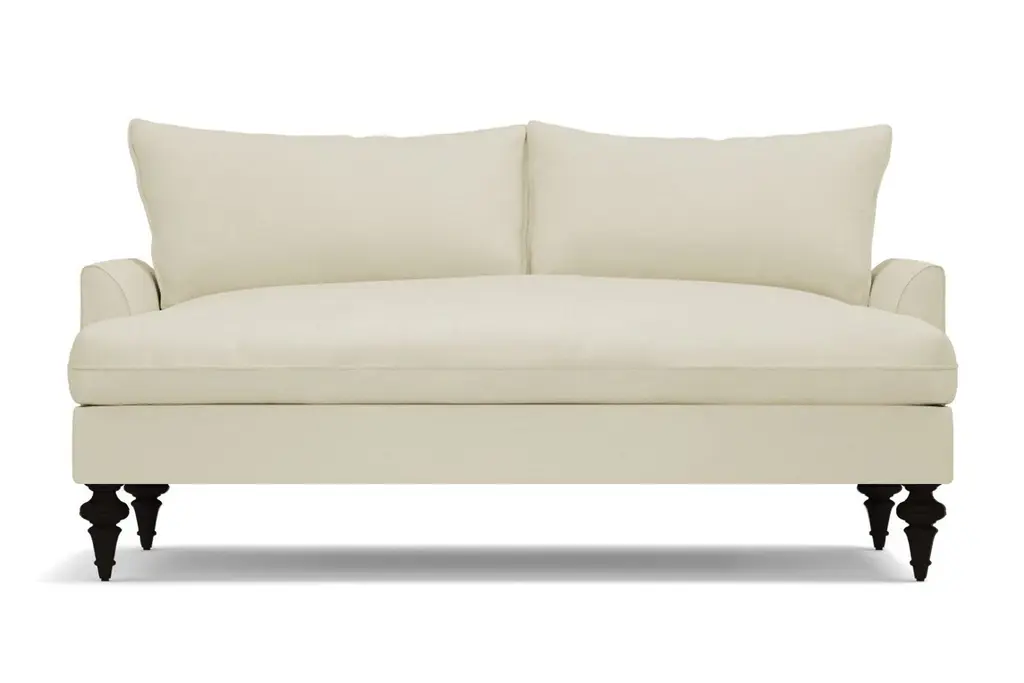 There are so many rave-worthy features on the Saxon Loveseat from Kyle Schuneman, but our favorite has to be the classic, decorative turned wood legs. For our high-heel wearing customers, the legs dress up this sofa much like heels dress up an outfit. They have the ability to elevate a simple design from same old to head-turning. Other impressive features of this transitional sofa include ultra-down plush seat cushioning and a deep bench seat for the ultimate in lounging comfort. The quality of the craftsmanship is evident throughout, and details such as knife edge trim along the seat and back cushions give it a refined, tailored finish, and the sofa is made in the USA. Choose from a range of colors that run the gamut from neutral and classy to warm and sassy.