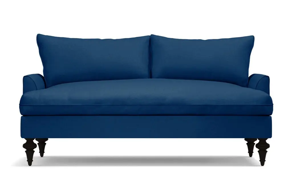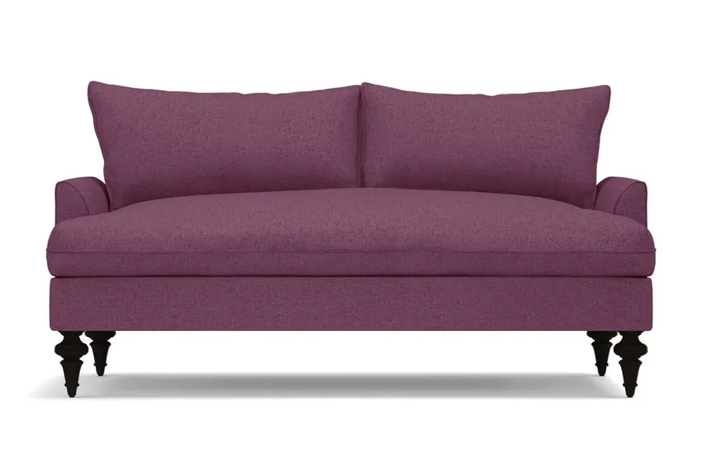 There are so many rave-worthy features on the Saxon Loveseat from Kyle Schuneman, but our favorite has to be the classic, decorative turned wood legs. For our high-heel wearing customers, the legs dress up this sofa much like heels dress up an outfit. They have the ability to elevate a simple design from same old to head-turning. Other impressive features of this transitional sofa include ultra-down plush seat cushioning and a deep bench seat for the ultimate in lounging comfort. The quality of the craftsmanship is evident throughout, and details such as knife edge trim along the seat and back cushions give it a refined, tailored finish, and the sofa is made in the USA. Choose from a range of colors that run the gamut from neutral and classy to warm and sassy.