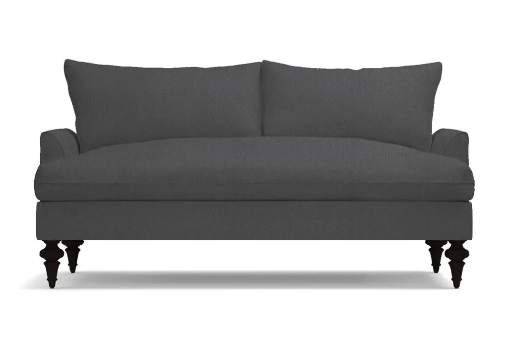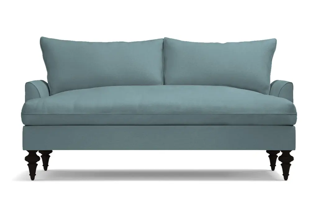 There are so many rave-worthy features on the Saxon Loveseat from Kyle Schuneman, but our favorite has to be the classic, decorative turned wood legs. For our high-heel wearing customers, the legs dress up this sofa much like heels dress up an outfit. They have the ability to elevate a simple design from same old to head-turning. Other impressive features of this transitional sofa include ultra-down plush seat cushioning and a deep bench seat for the ultimate in lounging comfort. The quality of the craftsmanship is evident throughout, and details such as knife edge trim along the seat and back cushions give it a refined, tailored finish, and the sofa is made in the USA. Choose from a range of colors that run the gamut from neutral and classy to warm and sassy.