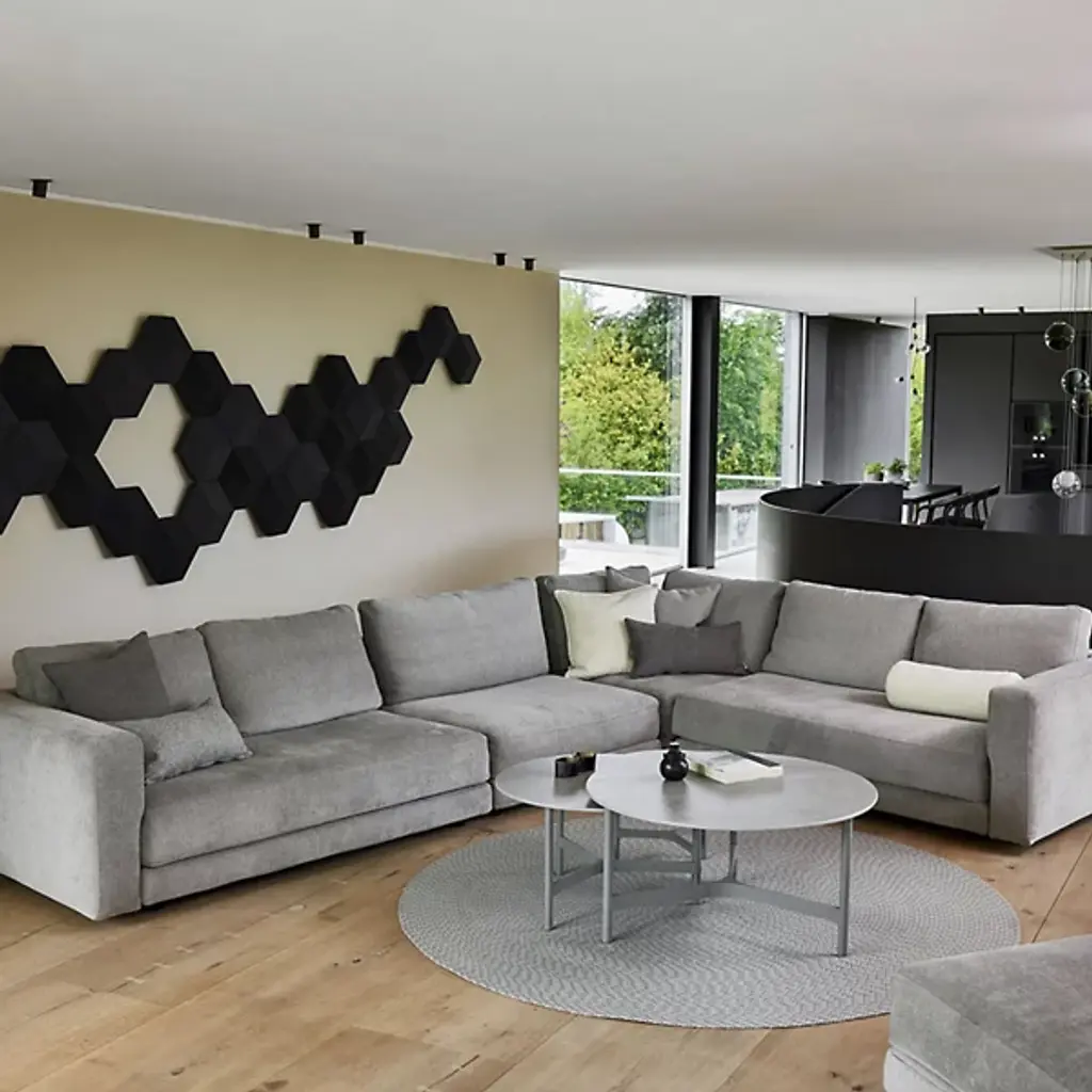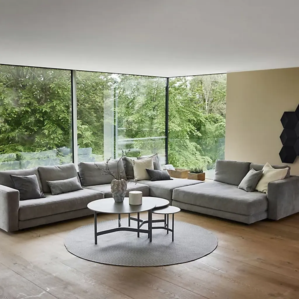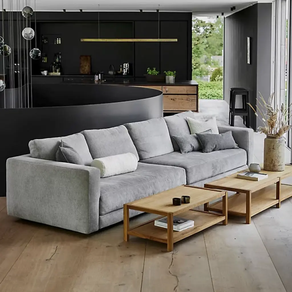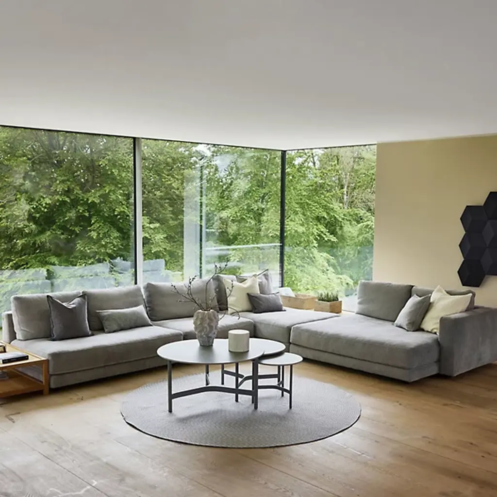 Add elegant and playful appeal to interiors with the Scale 2 x 2-Seater Sofa from Cane-line. Designed by Foersom & Hiort-Lorenzen, it starts with a strong aluminum under-structure resting atop four short legs; it uses a soft, supportive upholstery to provide casual comfort, creating a modular, retro-modern design with elements of Scandinavian subtlety. The fabric sheathing the soft upholstery is fashioned from a blend of multiple fibers, providing a soft yet strong surface that offers a welcoming appeal to its surroundings, the two couch cushions creating added depth.