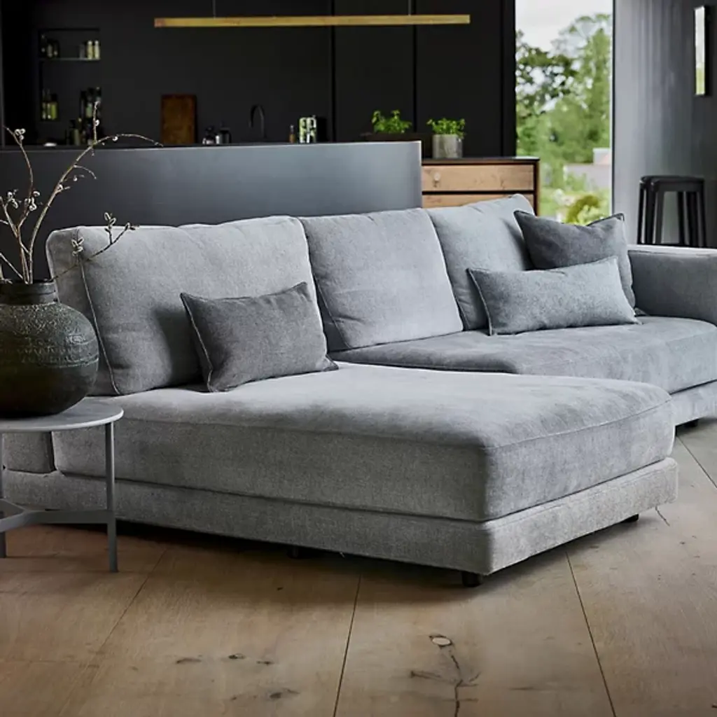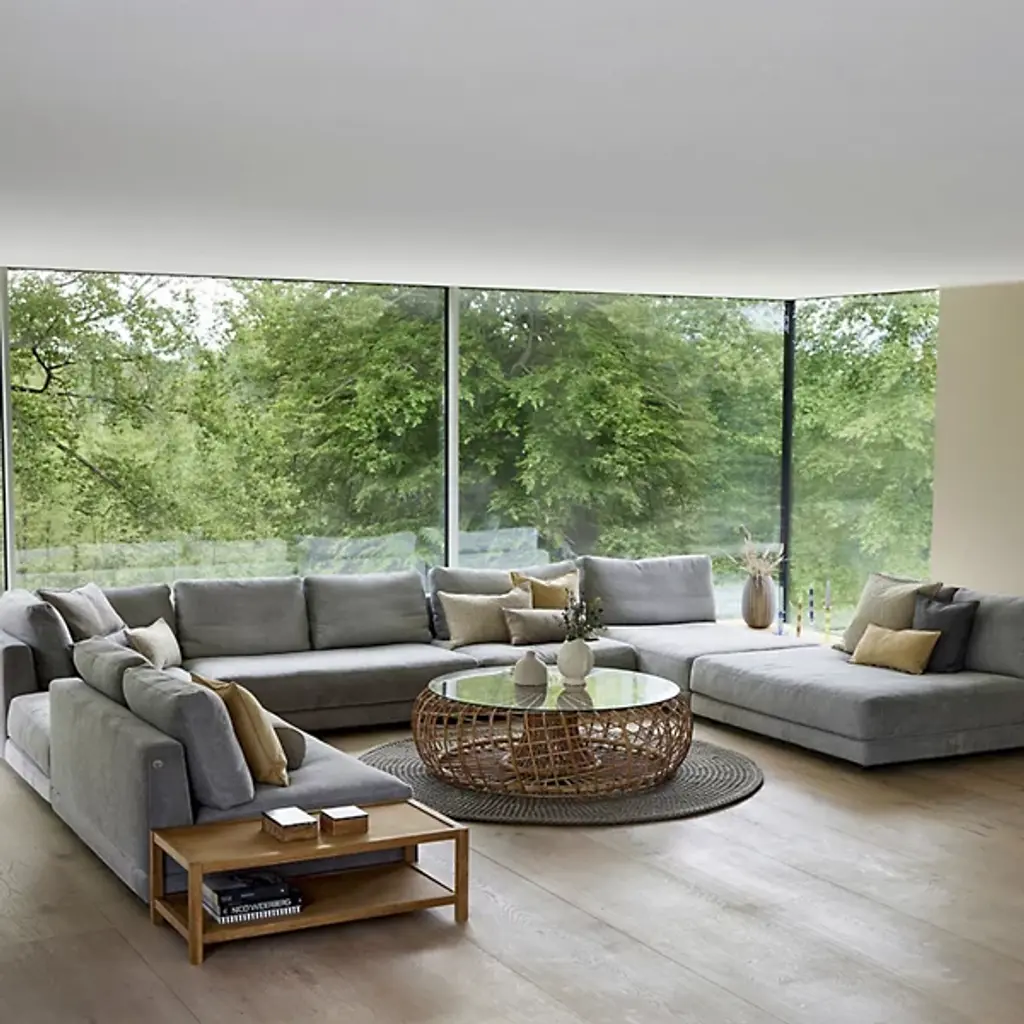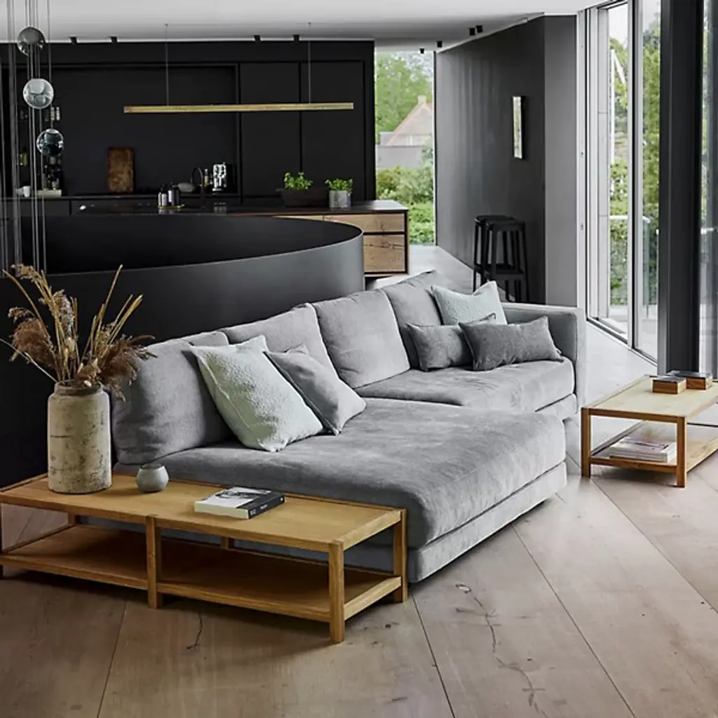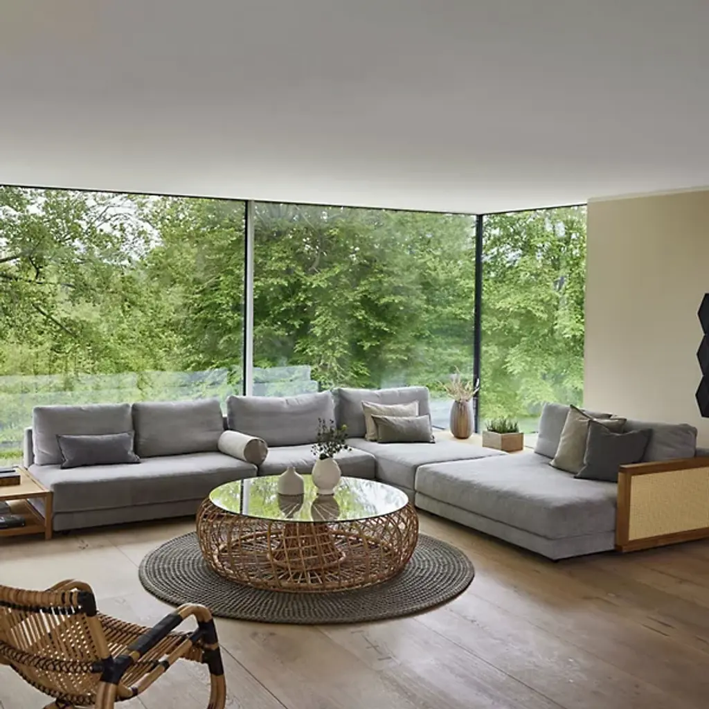 Add elegant and playful appeal to interiors with the Scale 2 x 2-Seater Sofa from Cane-line. Designed by Foersom & Hiort-Lorenzen, it starts with a strong aluminum under-structure resting atop four short legs; it uses a soft, supportive upholstery to provide casual comfort, creating a modular, retro-modern design with elements of Scandinavian subtlety. The fabric sheathing the soft upholstery is fashioned from a blend of multiple fibers, providing a soft yet strong surface that offers a welcoming appeal to its surroundings, the two couch cushions creating added depth.