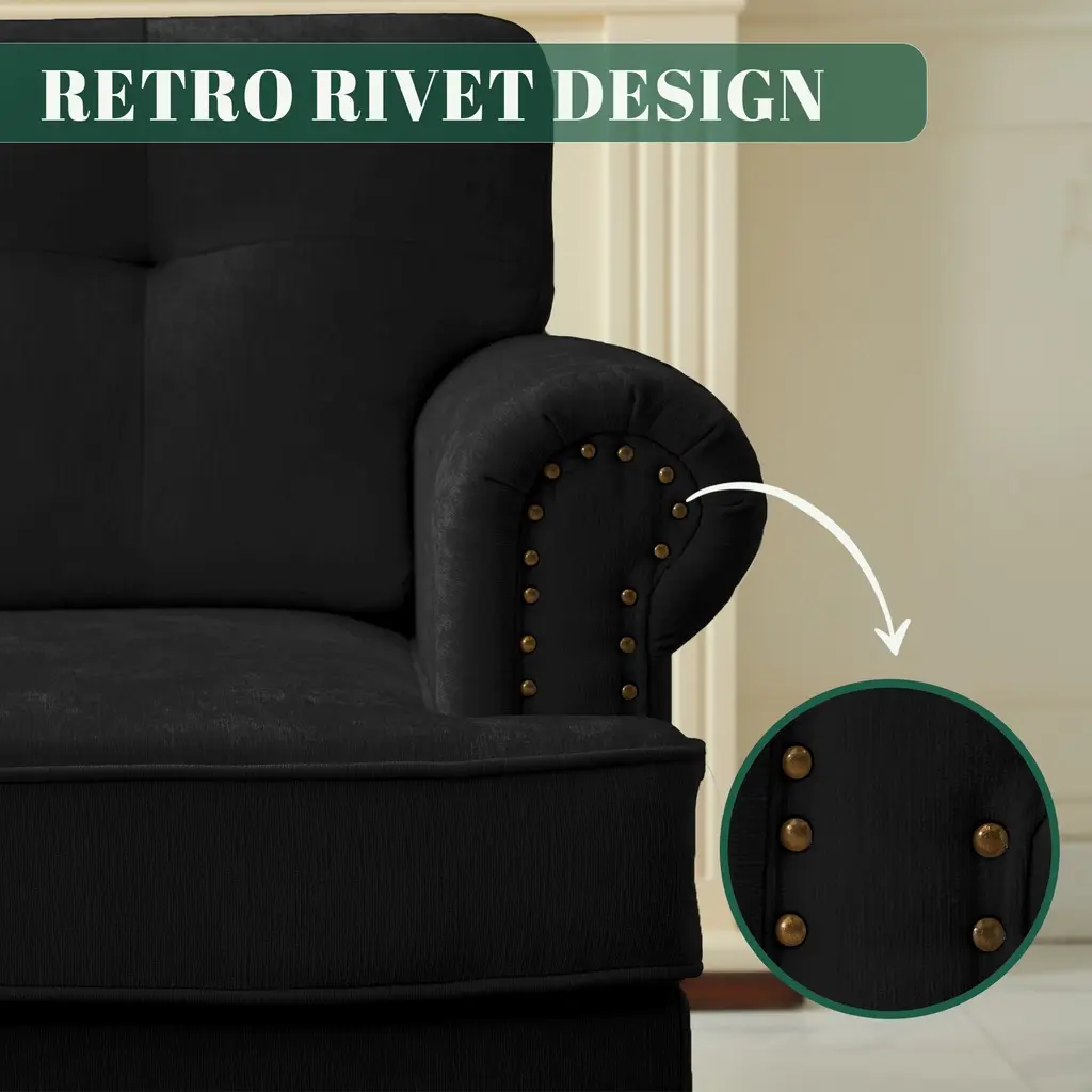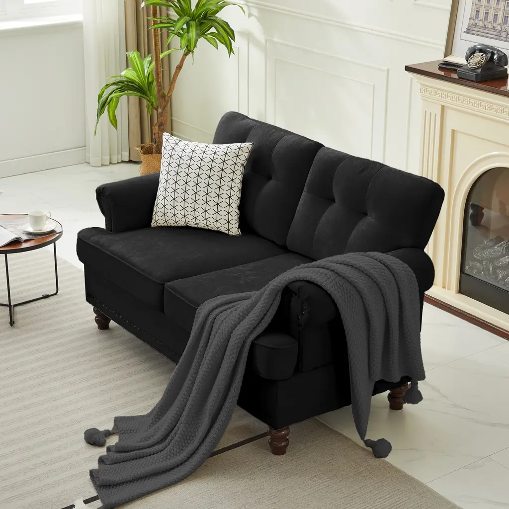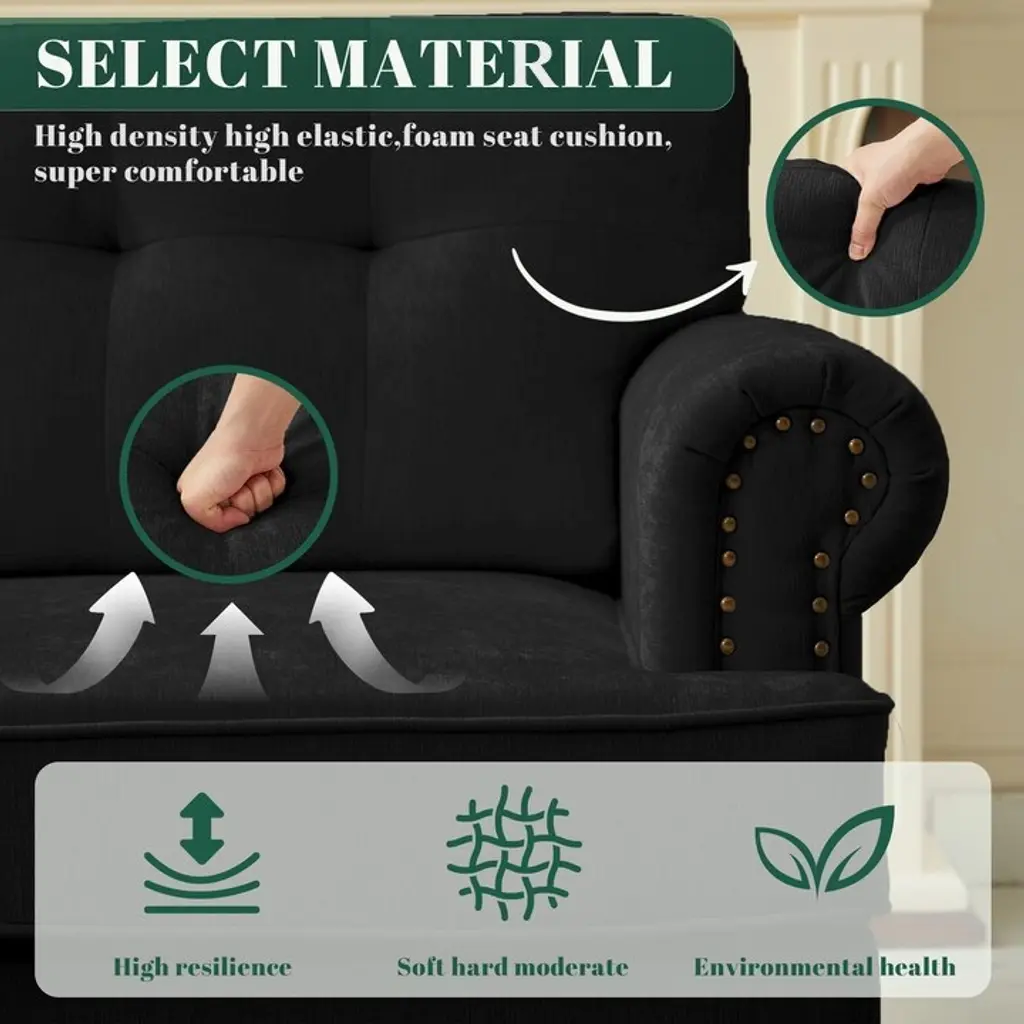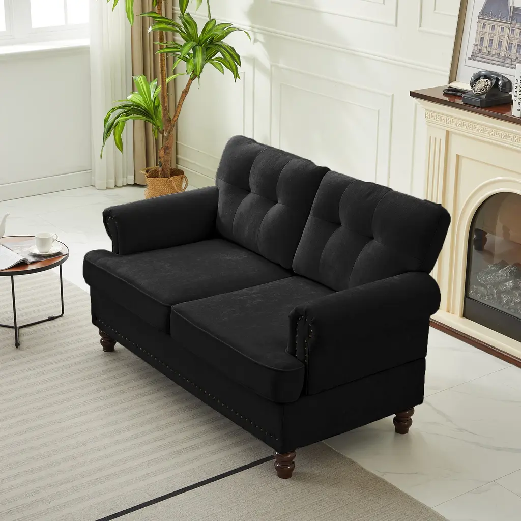 Set Of 1 Piece, Chenille Tufted Loveseat With Solid Rubberwood Legs For Living Room - Black