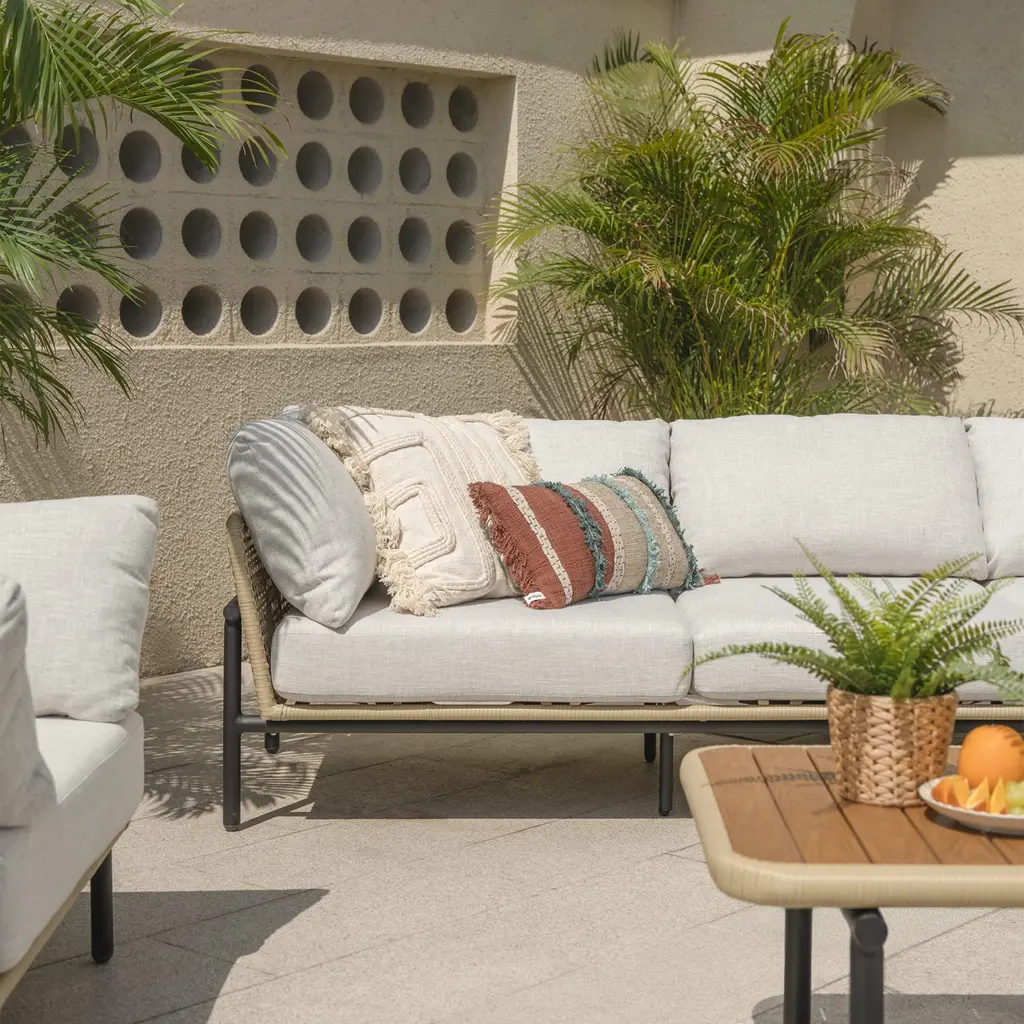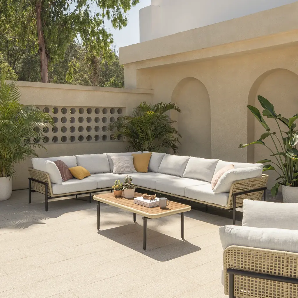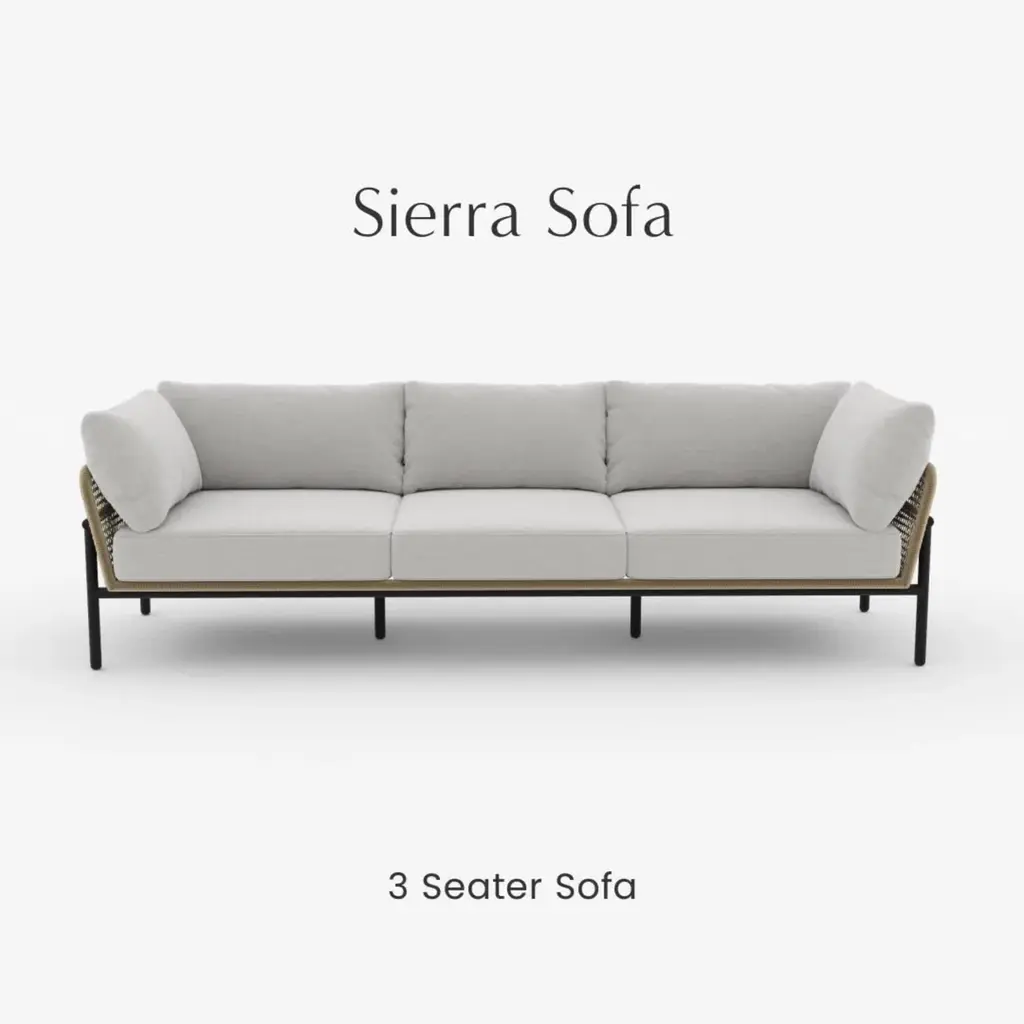 Framed with refined natural elements and plump cushions, Sierra delivers breezy outdoor living with charm and comfort.