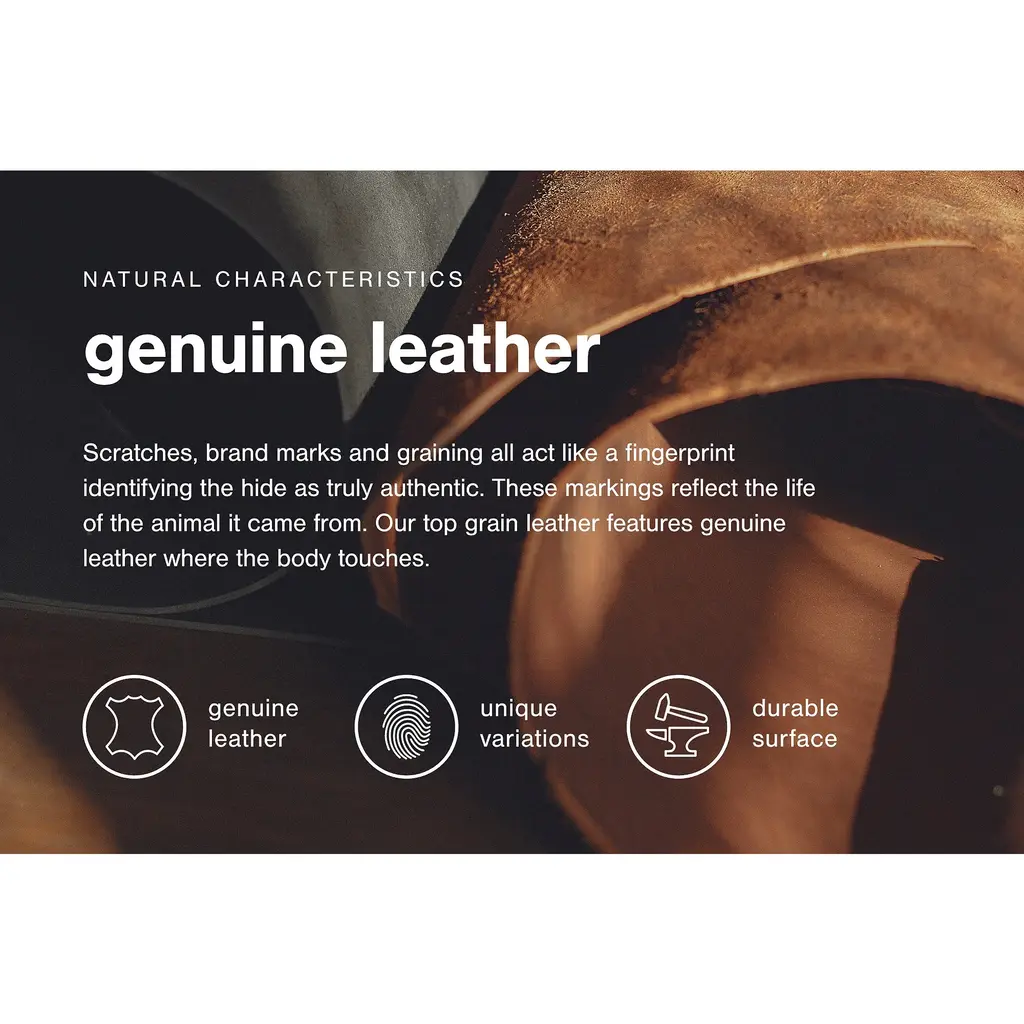 Keen on crisp, contemporary design? Adore the pleasure of leather? Look no further. This loveseat satisfies on every level. Richly textured and decadently supple, the cushion is wrapped with combination leather and faux leather upholstery in an on-trend onyx tone. Sleek double-padded arms and a low, clean-lined profile complete the spacious loveseat's simply chic appeal.Features:Corner-blocked frameAttached cushionsHigh-resiliency foam cushions wrapped in thick poly fiberGenuine leather typically covers inside areas such as the back, seat and arm cushions; skillfully matched faux leather covers the remaining areasLightly waxed pullup look; lightly buffed and embossed with protective finish to prevent scratchesDue to its natural origin, real leather can show individual characteristics such as healed scars, growth marks, grain variation and shade variationNatural variations make each hide unique and do not detract from the wearing qualities of leatherPlatform foundation system resists sagging 3x better than spring system after 20,000 testing cycles by providing more even support
