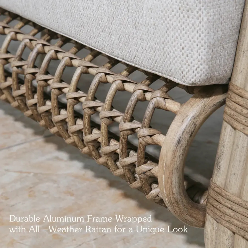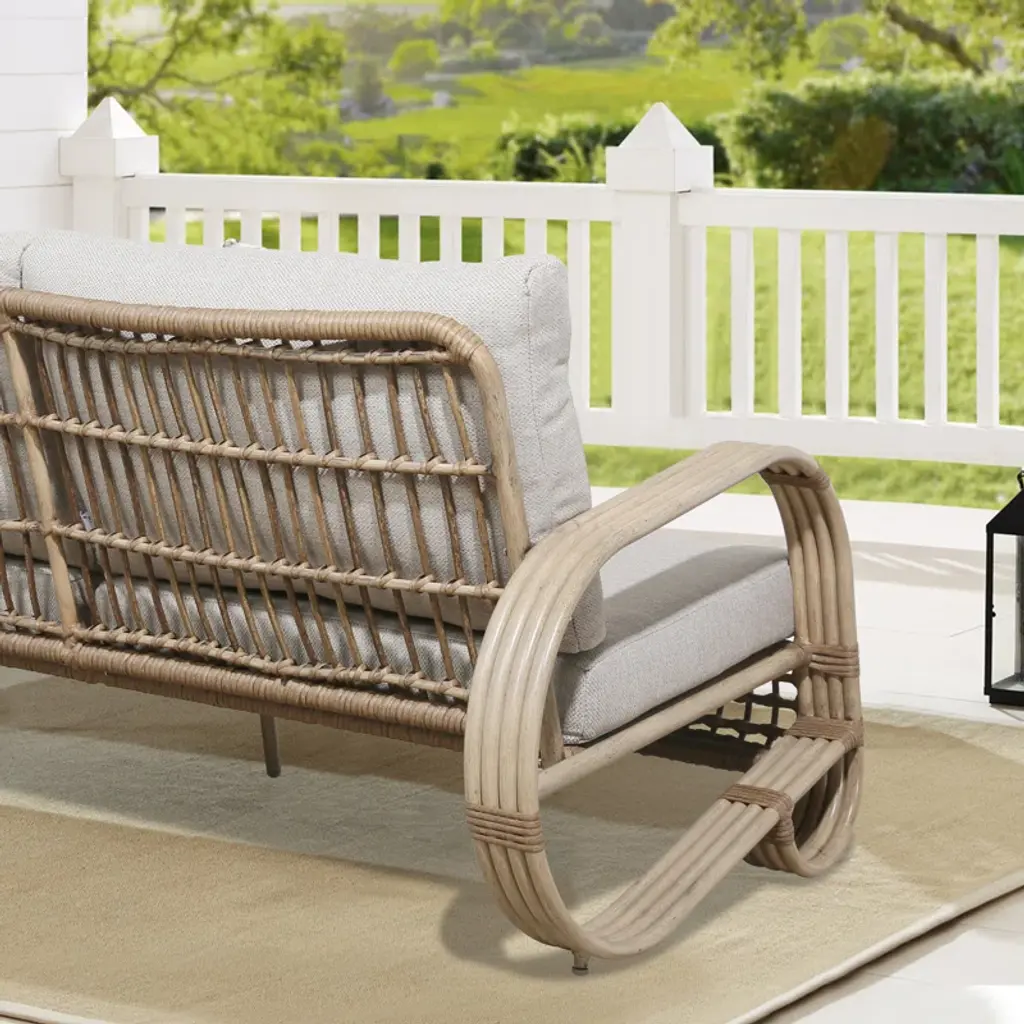 This outdoor loveseat adds a few extra spots to sit and hang out, ideal for patio meetups and backyard BBQs. Curved, open armrests extend to the legs to create a stylish shape that stands out wherever you place it. The inner frame is constructed from metal that's resistant to rust, UV rays, water, and mildew. Plus, it's wrapped in all-weather rattan for a coastal farmhouse feel anywhere. Fade-resistant, foam-filled olefin cushions come with this loveseat and provide ample support as you relax with your favorite beverage. The beige cushion covers are machine-washable for hassle-free upkeep.