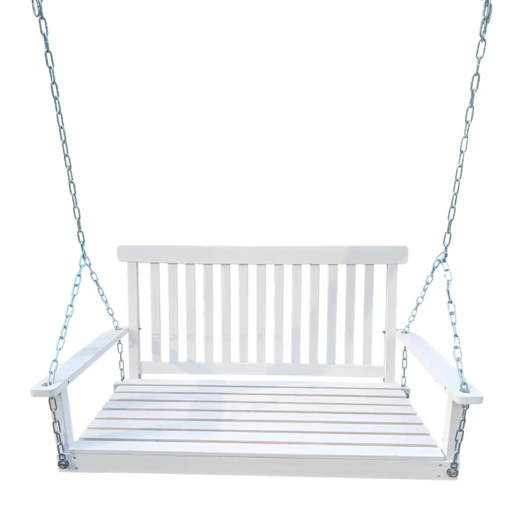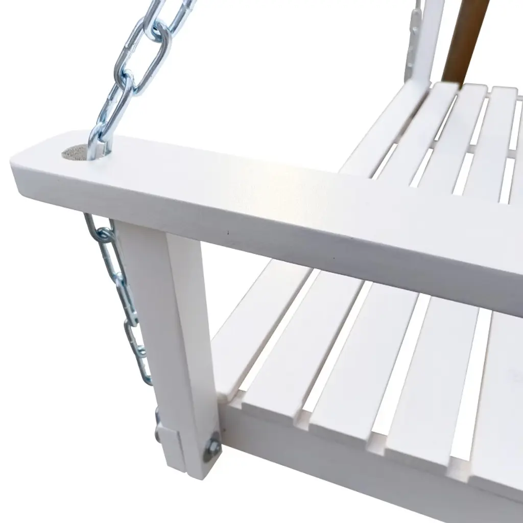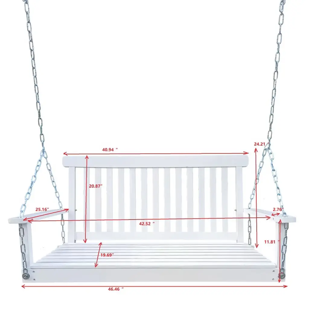 Skran Wooden Swing Chair Front Porch Swing 2-seater With Armrests, Bench Swing With Hanging Chains, For Outdoor Patio Garden Yard Sunroom (White)