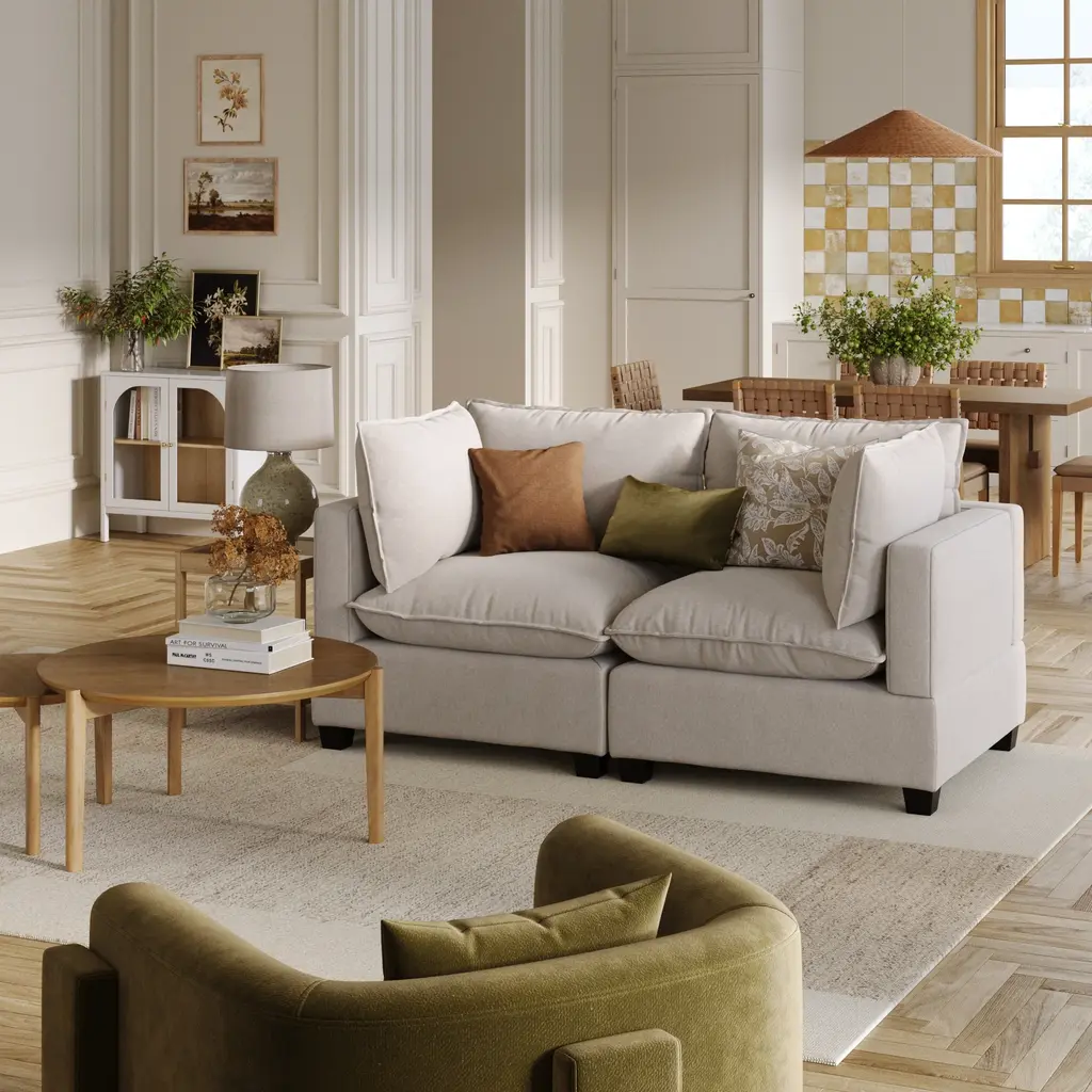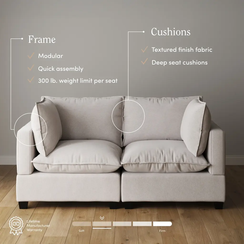 Introducing the Chelsea Cloud Couch—a perfect blend of comfort and style designed to make your living space a cozy haven. Wrapped in luxuriously soft beige textured finish fabric, this sofa features deep seat cushions and plush, pillow-like back cushions. Enjoy effortless setup with quick assembly. Built to last, each seat supports up to 300 lbs., ensuring everyone can sink into cloud-like comfort. Experience the ultimate in relaxation with the Chelsea Cloud Couch today!