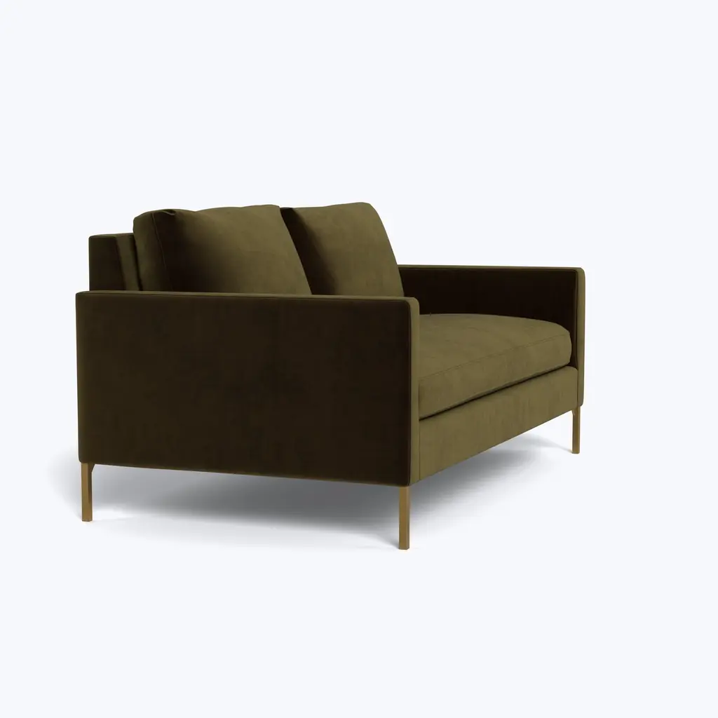 The 64" Soho Loveseat, exclusively from ABC Carpet & Home, brings the chic sophistication and modern flair of New York’s Soho neighborhood to any space. With its sleek, low-profile design and spacious bench seat, this loveseat is the perfect choice for small living rooms, end-of-bed placement, or even stylish entryways. Its customizable brass or steel legs allow you to match it to your unique interior style, adding a touch of elegance wherever it’s placed. Crafted with eco-conscious values, the Soho Loveseat features a durable Goodwood frame. The cushion cores are made from eco-friendly foam derived from sustainable, plant-based materials and wrapped in a plush blend of feather and down, creating a balance of softness and support. Whether used for lounging or as additional seating, this loveseat provides both style and comfort in equal measure. Choose from our in-stock fabrics or personalize your Soho Loveseat with over 80+ custom fabric options. Opt for bold jewel-tone velvets like Vance for a statement piece, performance fabrics for durability in busy households, or elevate the look with Libico linen for a more refined aesthetic. Handcrafted with attention to detail, your custom loveseat will be delivered to your home within 8-10 weeks, offering a seamless and luxurious experience. Designed to fit effortlessly into smaller spaces, the 64" Soho Loveseat is perfect for those who appreciate both practicality and upscale design. Its clean lines, versatile size, and customizable options make it an ideal solution for creating a sophisticated seating arrangement in any room. Pair the Soho Loveseat with other pieces from the Soho collection, including the 91" sofa or the lounge chair, to create a cohesive, modern living space that reflects your personal style and delivers the ultimate in comfort and design.