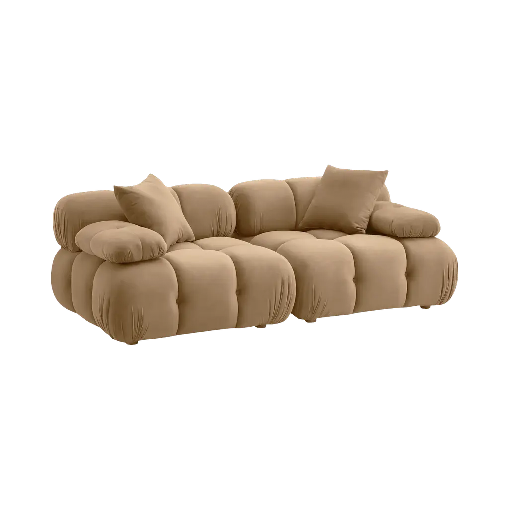 The Solace Loveseat in Cafe Au Lait Velvet brings luxurious comfort and flexible design to your home. Its performance velvet fabric ensures durability while enhancing the elegance of your space.Plywood,Velvet,Wood | Ultra-soft performance velvet upholstery | Pillowy silhouette with deep hand-tufted design | Modular design allows for endless configuration possibilities - create your dream piece for your space