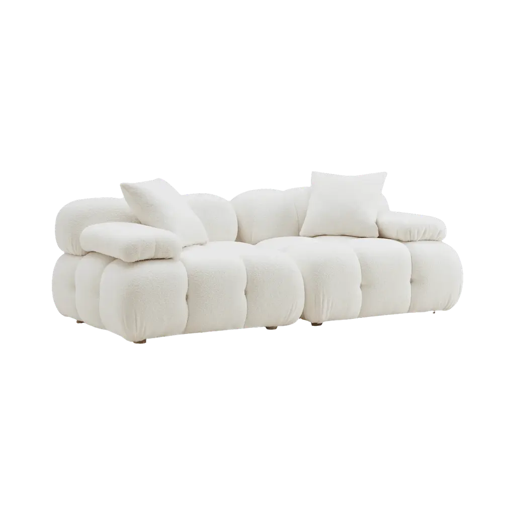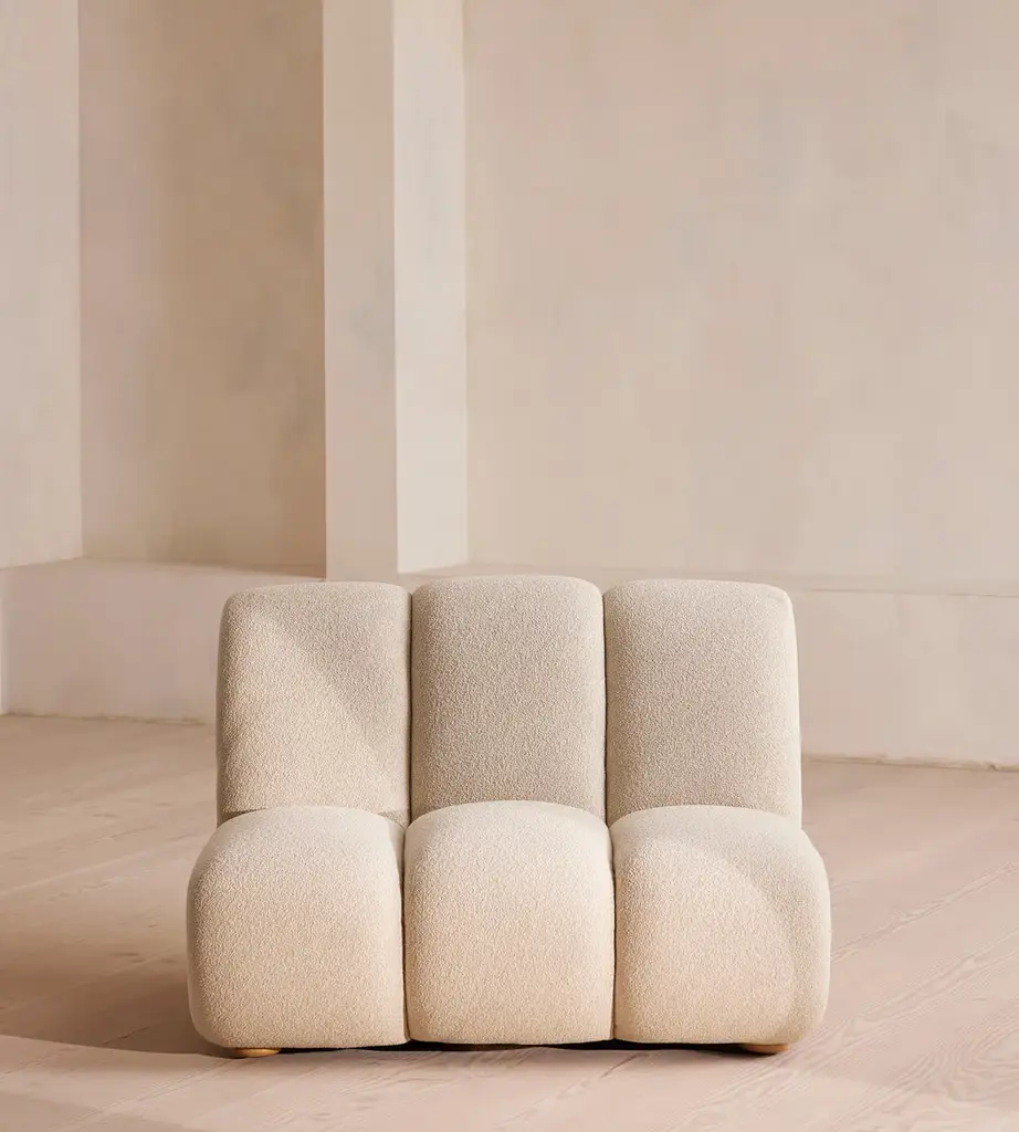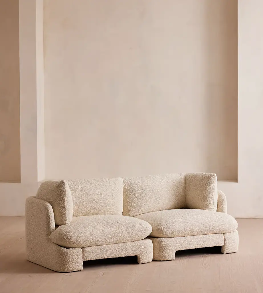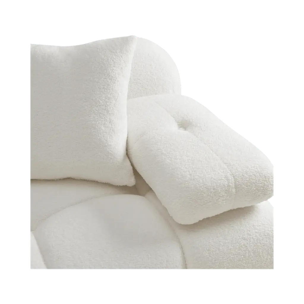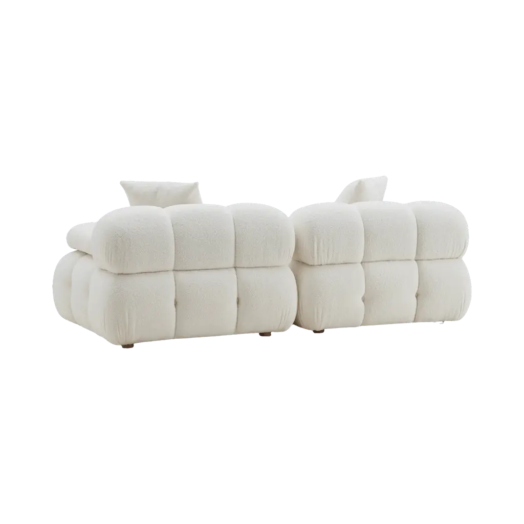 The Solace Modular Loveseat in Cream Vegan Shearling offers plush comfort and versatility. With its modular design, it’s perfect for cozy spaces while allowing customization to fit your layout.Fabric,Plywood,Wood | Ultra-soft vegan shearling upholstery | Pillowy silhouette with deep hand-tufted design | Modular design allows for endless configuration possibilities - create your dream piece for your space