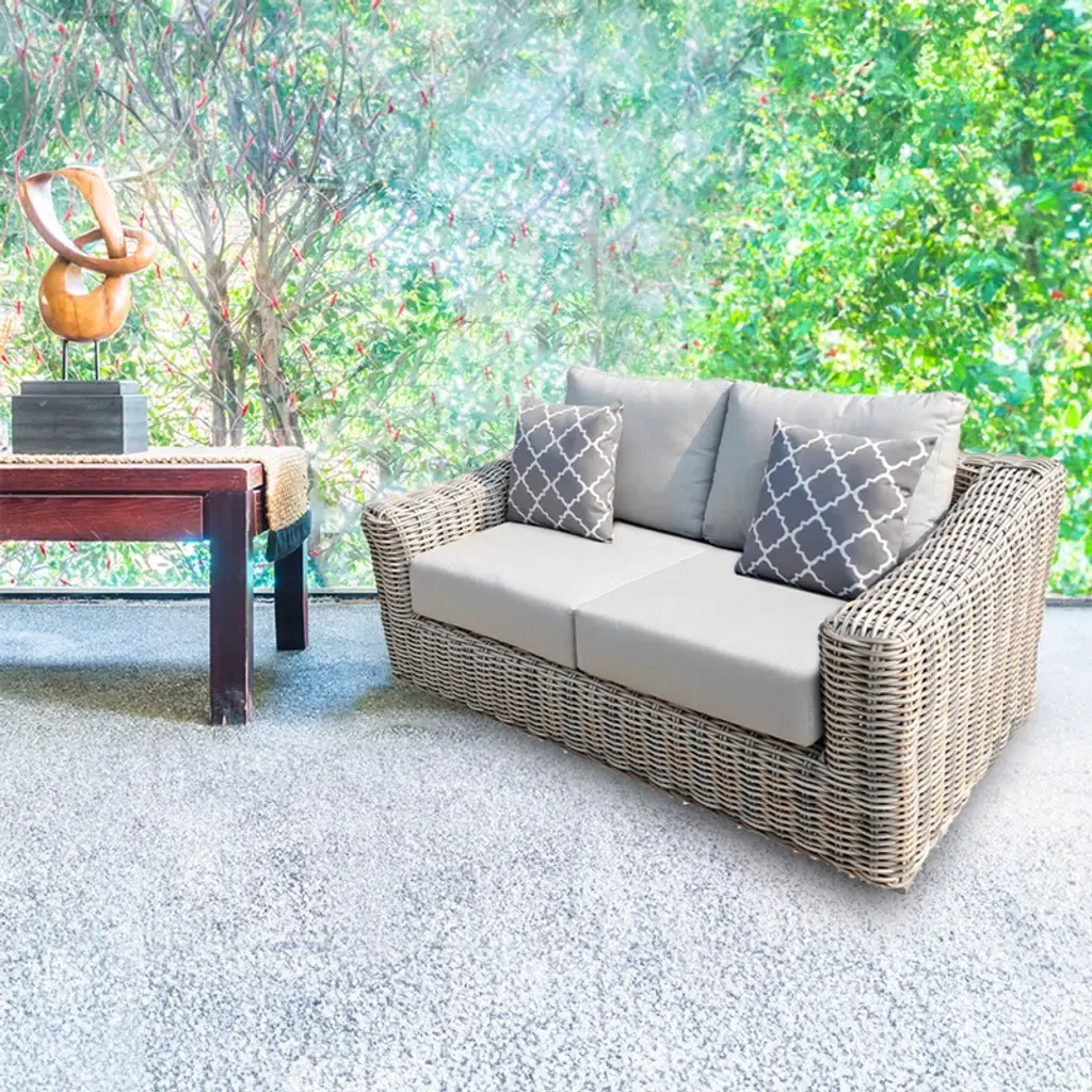 Rounded edges and soft lines add a down-home relaxed feel, yet it features a solid aluminum build and resin wicker to ensure long-lasting comfort.