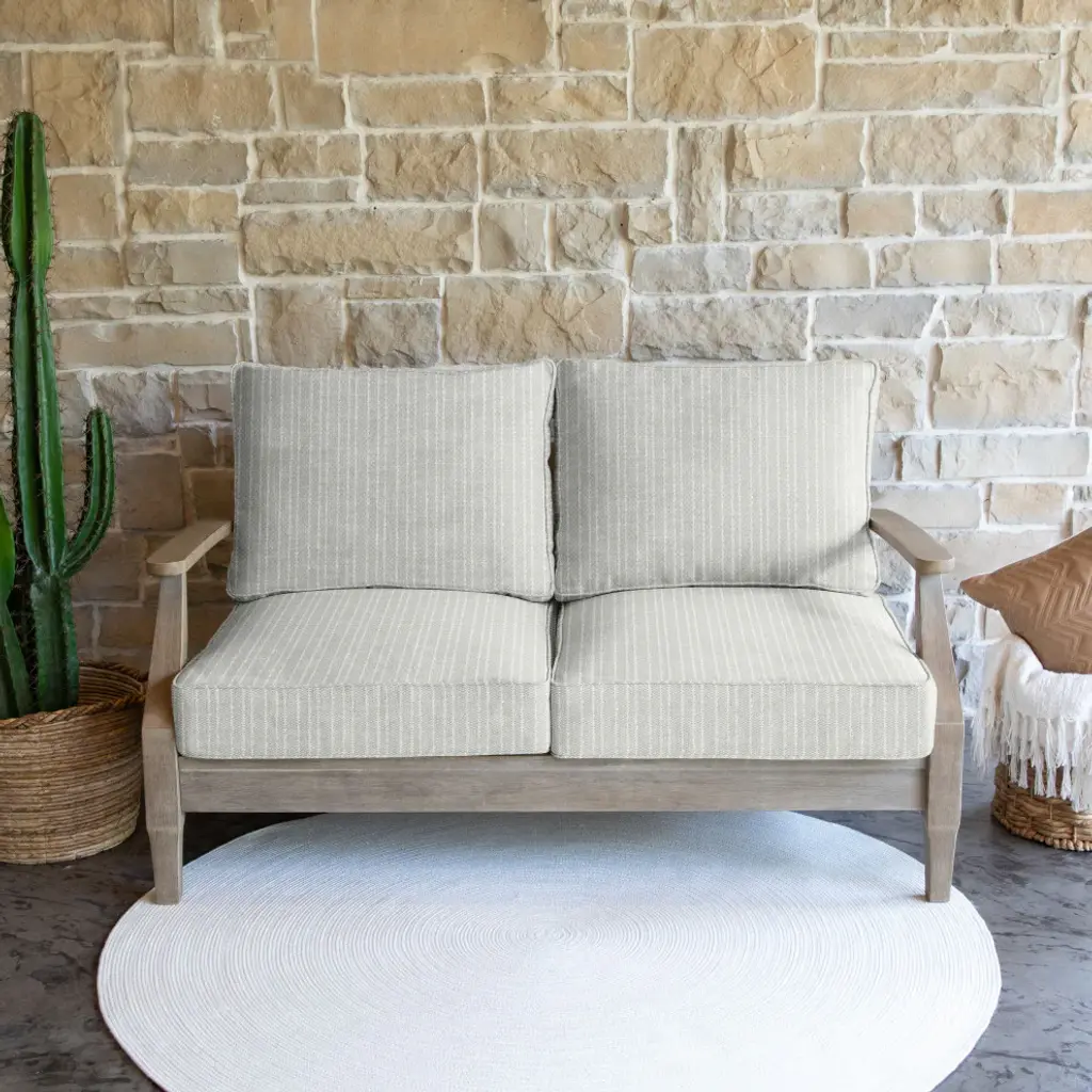 Enjoy nature with friends and family this season with the help of this luxurious loveseat cushion set! Featuring a classic stripe fabric in a rich, Gray hue, this cushion set will create the perfect setting on your porch or patio for all of your outdoor get-togethers! Crafted out of a performance material right here in North America, this loveseat cushion set is built to withstand sun, stains and all other outdoor elements. Outdura is the trusted brand for performance upholstery fabric for outdoor and indoor use.Outdura fabrics are made from 100% solution-dyed acrylic with color pigments infused to the core of fibers, ensuring colorfastness, UV resistance, and durability. • Ideal for casual indoor and outdoor use• Includes two (2) back cushions and two (2) seat cushions• Cushion covers can be removed for easy cleaning• Available in a variety of colors to ensure that you find the perfect match for your dcor style• Cushions only. Furniture not included.• • Made in North America•