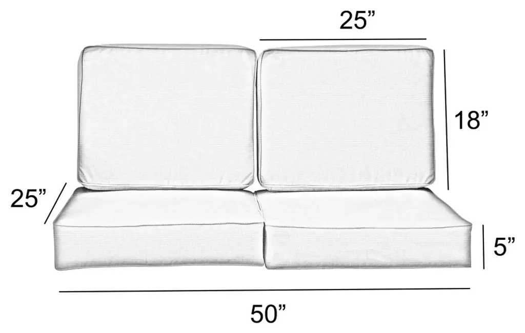 Enjoy nature with friends and family this season with the help of this luxurious loveseat cushion set! Featuring a classic solid textured fabric in a rich, tan hue, this cushion set will create the perfect setting on your porch or patio for all of your outdoor get-togethers! Crafted out of a performance material right here in North America, this loveseat cushion set is built to withstand sun, stains and all other outdoor elements. Outdura is the trusted brand for performance upholstery fabric for outdoor and indoor use.-Outdura fabrics are made from 100% solution-dyed acrylic with color pigments infused to the core of fibers, ensuring colorfastness, UV resistance, and durability.- • Ideal for casual indoor and outdoor use• Includes two (2) back cushions and two (2) seat cushions• Seat cushion cover can be removed for easy cleaning. Back cushion cover is not removable.• Available in a variety of sizes and colors to ensure that you find the perfect match for your furniture• Cushions only. Furniture not included.• • Made in North America•
