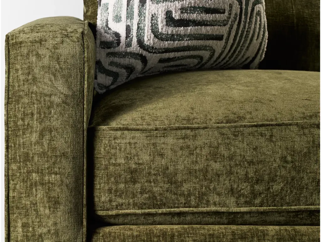 Give your living space a modern makeover with the Peak Living South Main Loveseat. Unwind comfortably on its soft upholstery with tonal welt trim. This contemporary loveseat is styled with tufted back cushions, track armrests, and tapered square legs. Includes two coordinating toss pillows for added comfort and style.