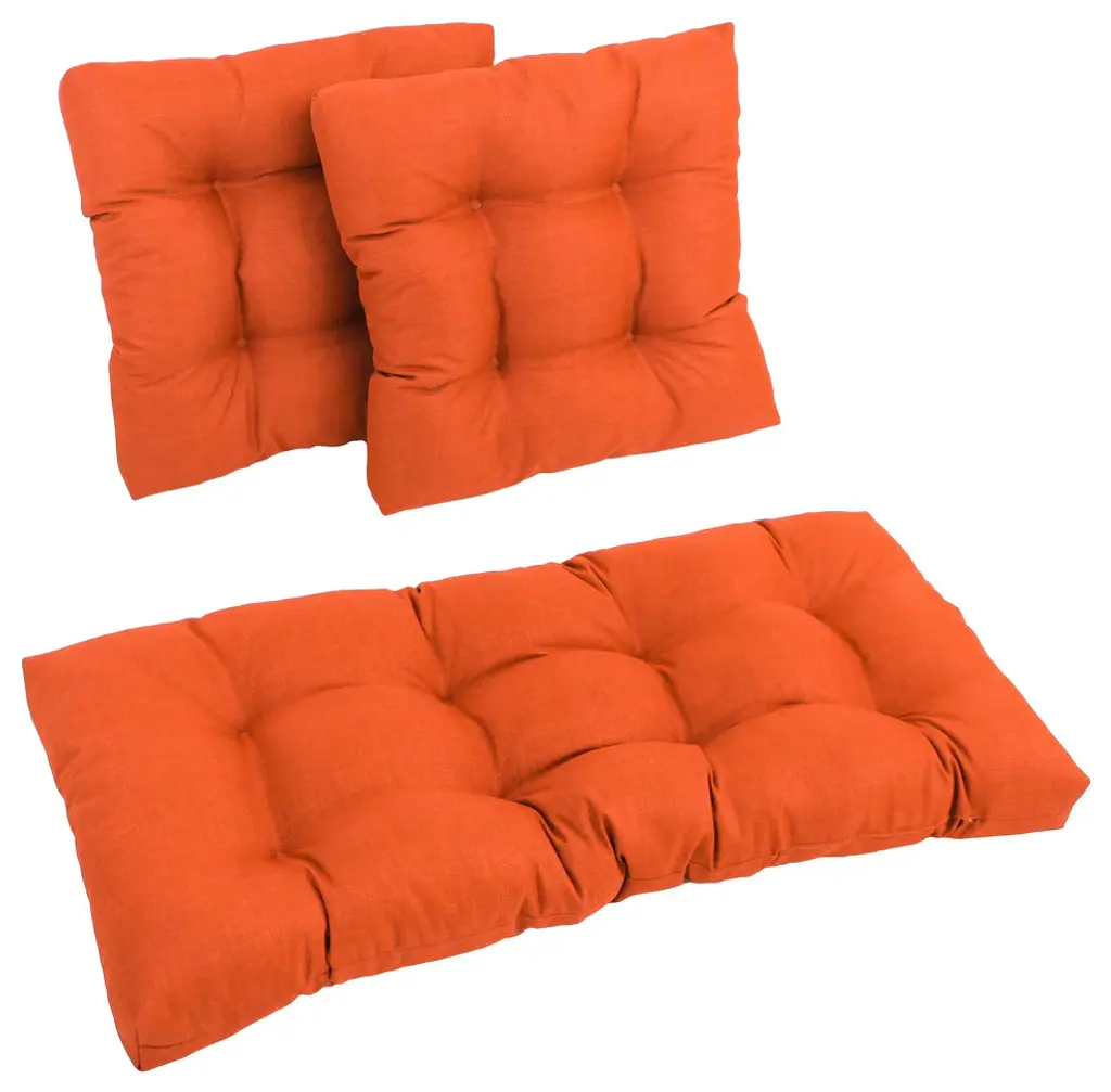 Square Outdoor Tufted Settee Cushions, 3-Piece Set, Cinnamon