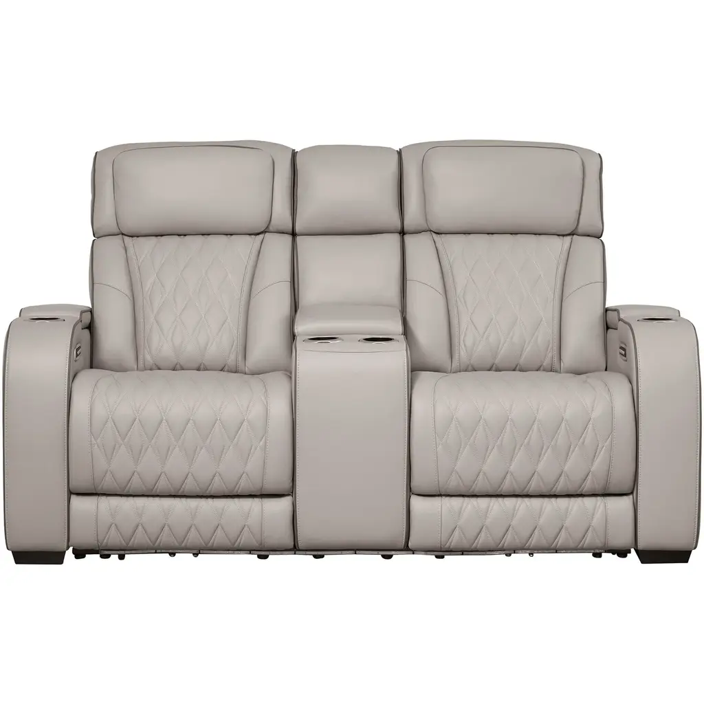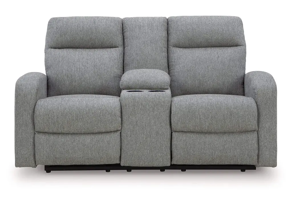 Complete your home with the State Street dual power reclining loveseat. Topped in soft chenille fabric, this piece offers incredibly soft seating perfect two. Its dual power with Zero Gravity adjustability grants customized comfort and relieves pressure on your neck and back. Stainless steel cupholders and console storage provide extra amenities as the two-tone gray color completes the contemporary look. Upholstery:100% Polyester.
