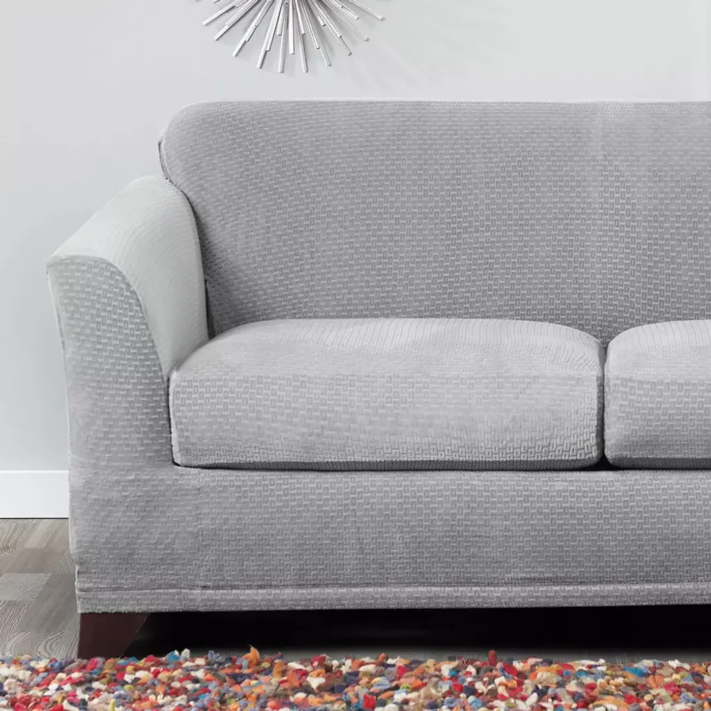 Refresh your loveseat’s style with a modern, on-trend look – while helping protect your furniture from pets, kids, and daily wear and tear. Stretchy fabric with a contemporary, block tile design helps make a statement in almost any room – whether you’re decorating a family room, dorm room or guest room. Designed to create a sleek, form fit, the zippered, separate seat cushions require no re-tucking. Machine washable, for easy care. Designed in the United States by SureFit, the leader in furniture protection since 1914.