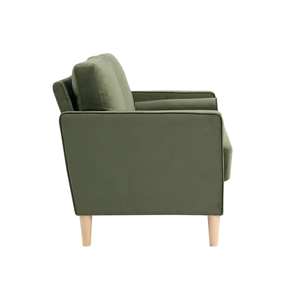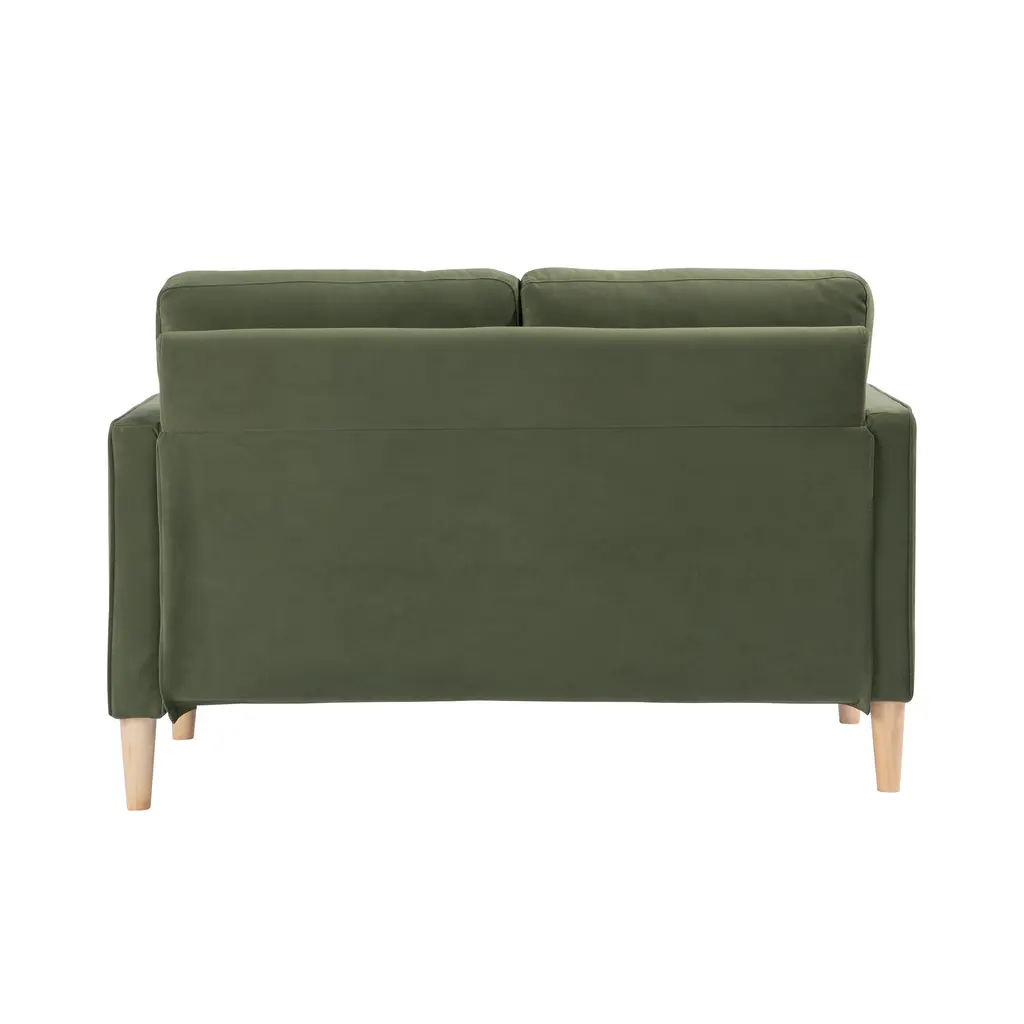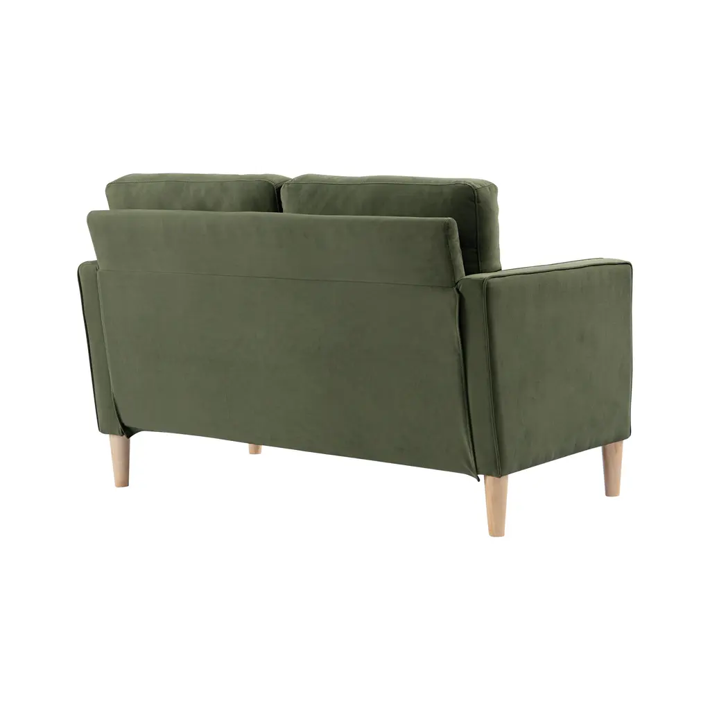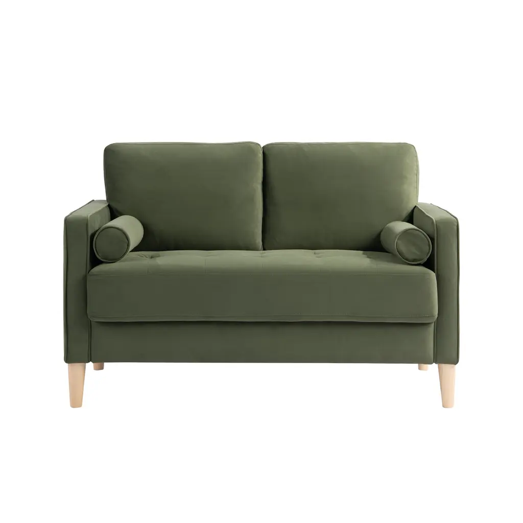 Enjoy the perfect blend of style and functionality with the Lillith Loveseat. This compact loveseat from the Lillith Collection, with its minimalistic design, is perfect for small spaces. Built to last, it features a Dacron-wrapped solid hardwood eucalyptus frame that provides stability. The tufted high density foam seat cushions are made with pocket Dream Coils® for a comfortable seating experience. The easy to clean high-performance polyester fabric ensures you can keep it looking neat and tidy. With wood legs in a brown finish, removable back cushions, and two matching pillows included, the Lillith Loveseat is a must-have. This loveseat will soon become your favorite place to sit.Features:Seat Details:Other Details: