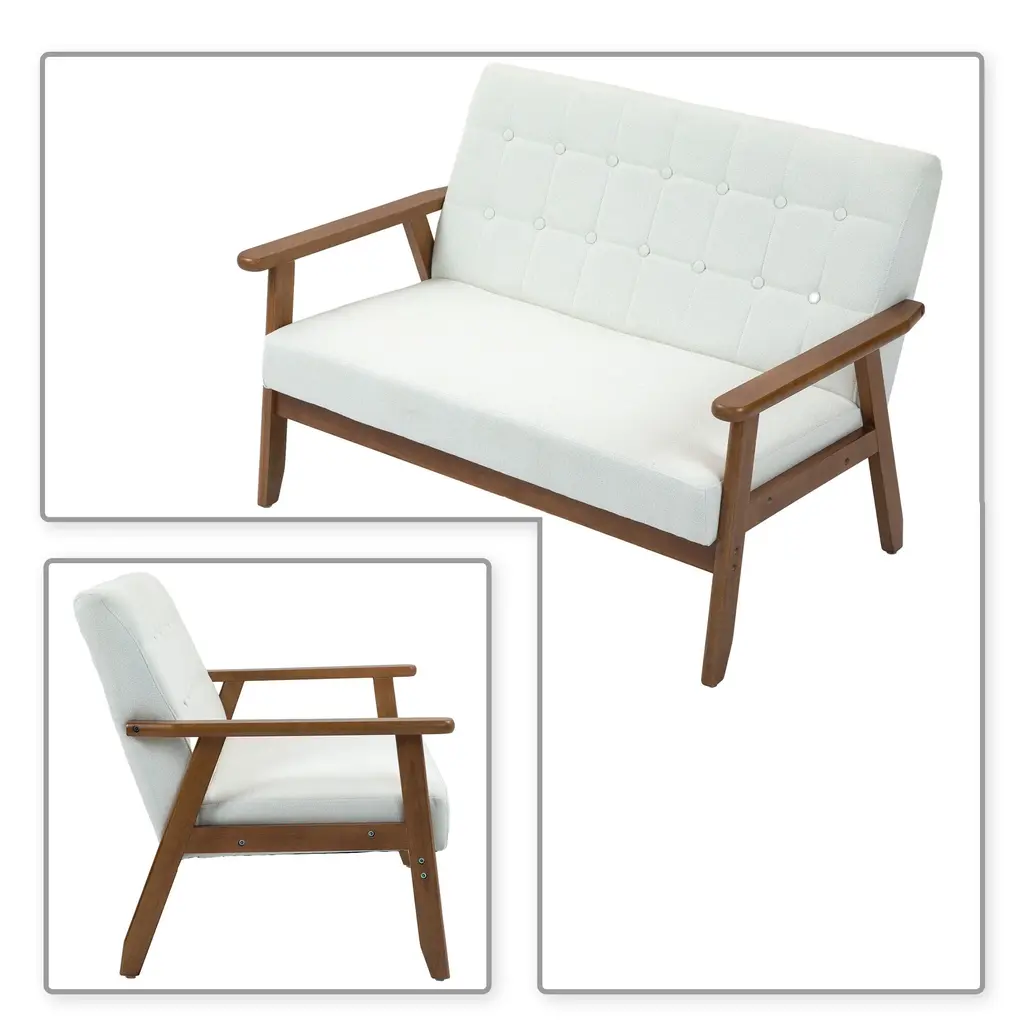 Stylish Vintage Fabric Upholstery Loveseat With Tufted Button Decorated Backrest - Beige Linen