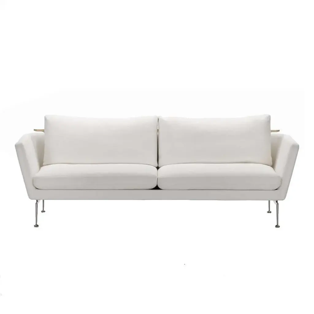 The Suita Sofa system combines light and slender volumes with an industrial and technological aesthetic. The geometrically precise body and cushions seem to float above the sleek, bridge-like aluminium legs, which can be seen as a tribute to mid-century American design. The Suita Sofa family consists of many individual components. These can be used as independent elements or freely combined to adapt to all kinds of interior environments and furnishing needs. This version of the Suita Sofa comes with soft upholstery. A firm version is also available. More fabrics and fabric colors are available upon request. Please contact our Customer Service department at 800-506-6541 for more options.